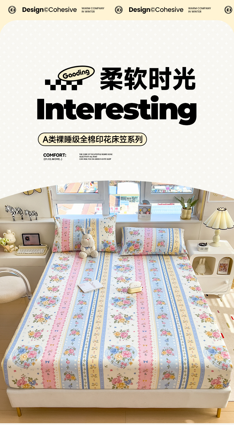 摩妮卡 2025新款A类裸睡级全棉印花床笠系列 花漫屿