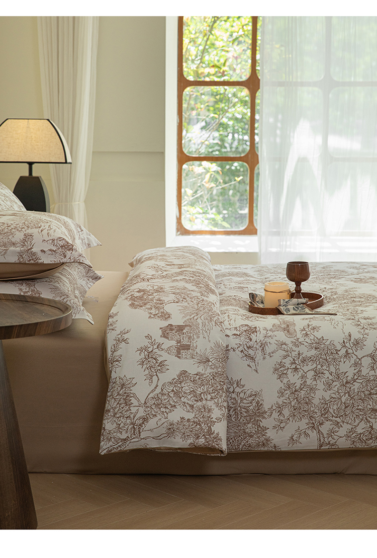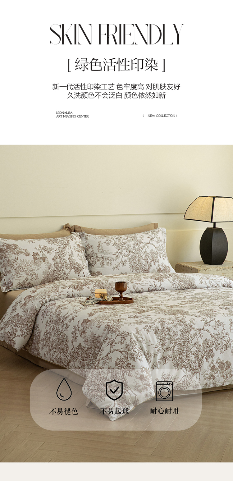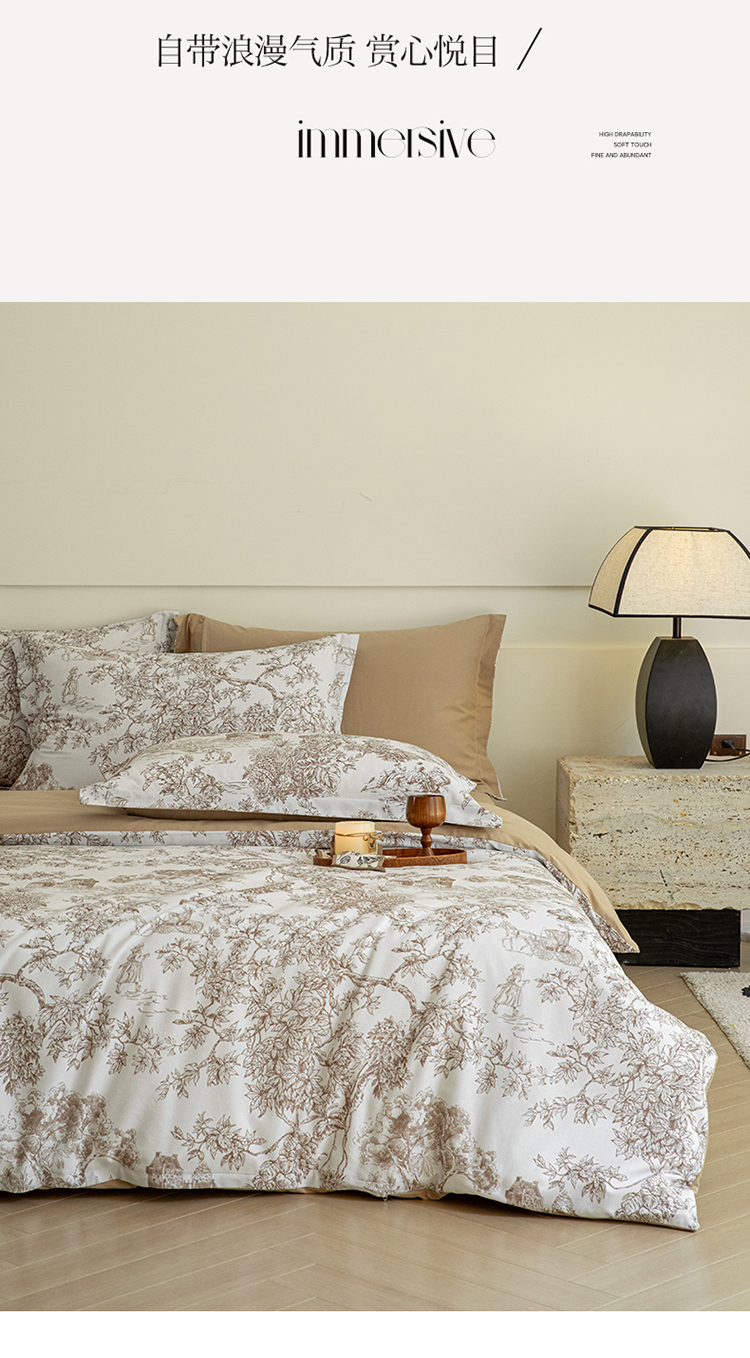 (买家秀爆款花色不断货)A类母婴级纯棉磨毛四件套简约纯棉全棉磨毛四件套纯棉四件套全棉四件套磨毛三件套 温莎古堡-棕