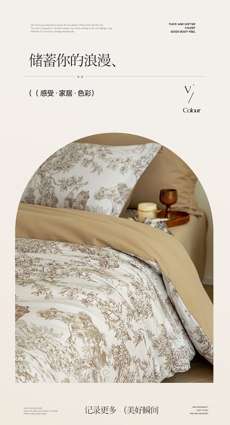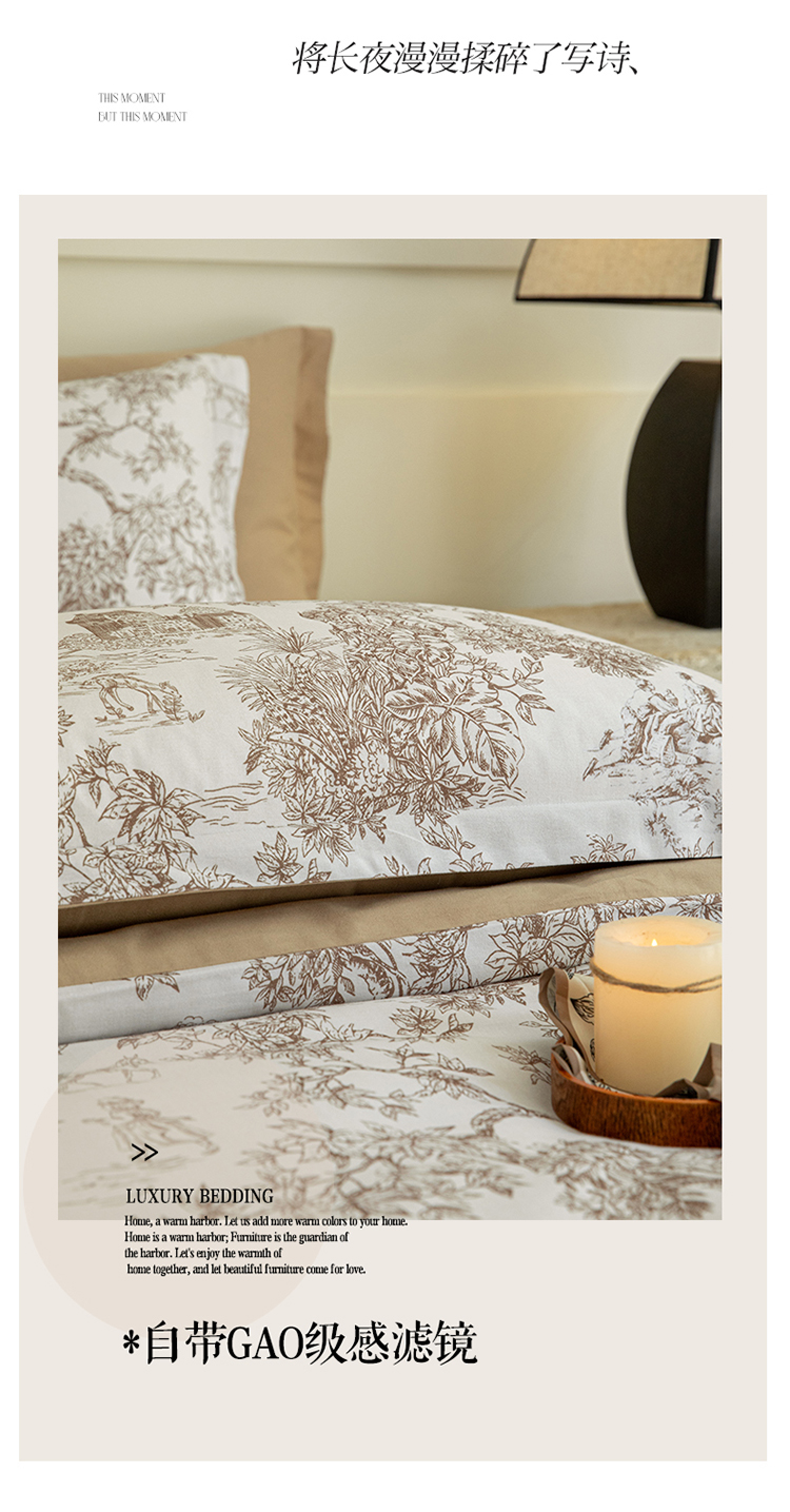商品名称:(买家秀爆款花色不断货)A类母婴级纯棉磨毛四件套简约纯棉全棉磨毛四件套纯棉四件套全棉四件套磨毛三件套 温莎古堡-棕