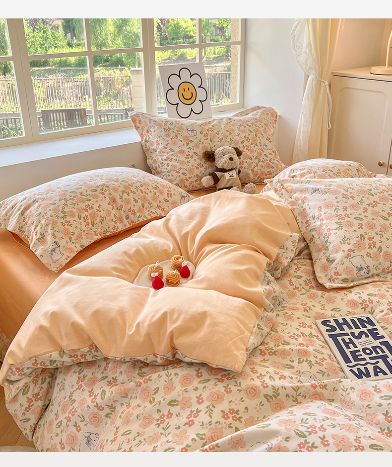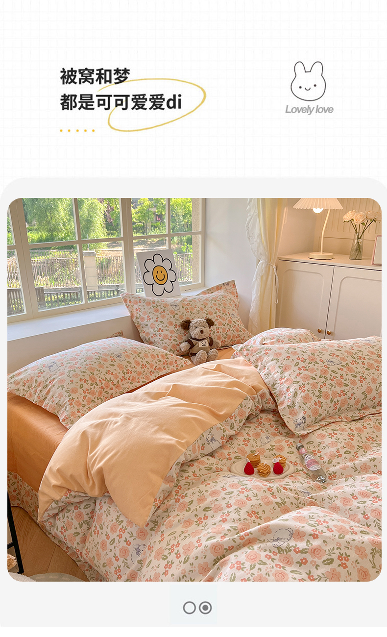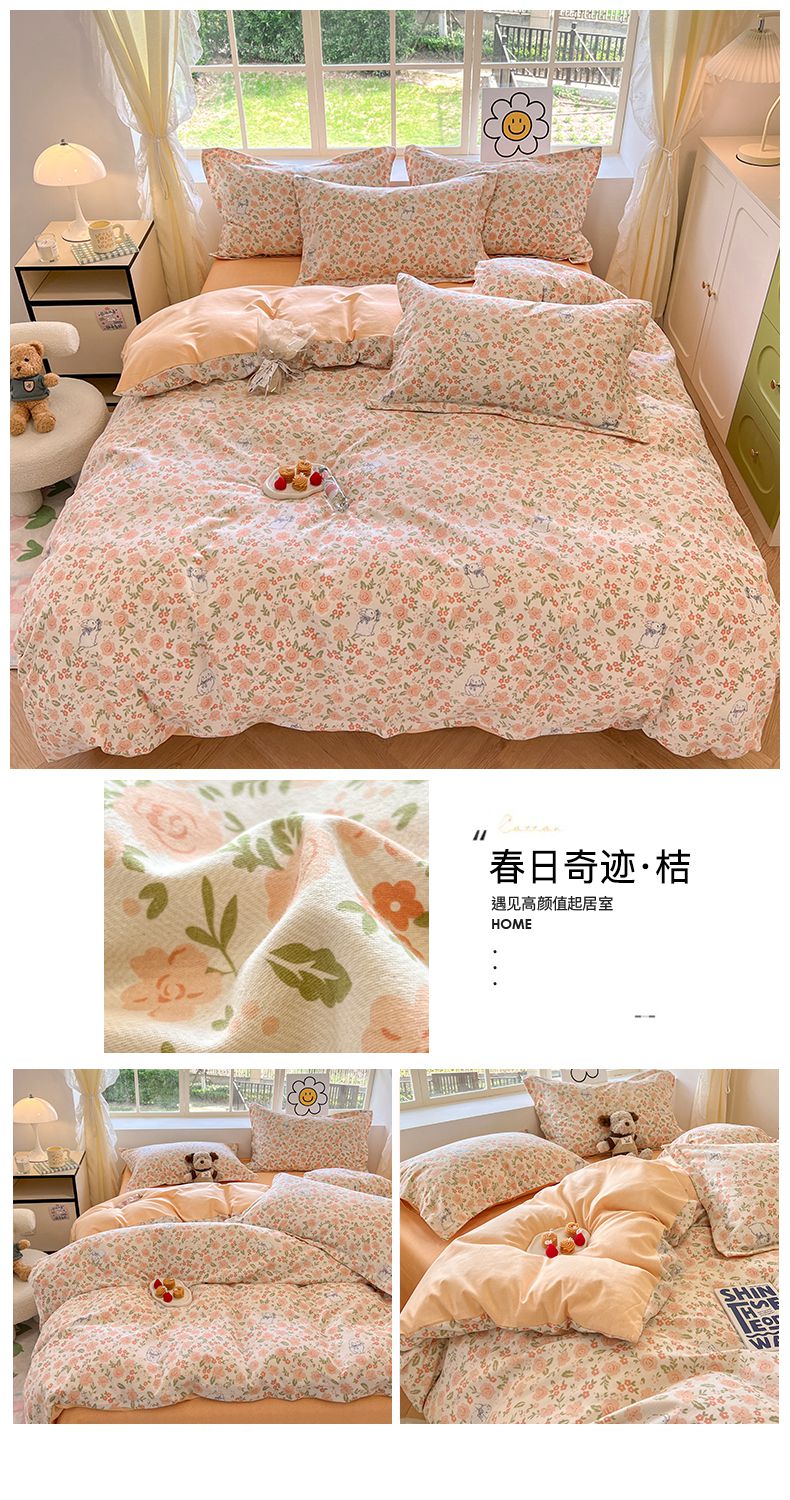 当前位置: 91家纺网 > 商品网购 > 床品套件 > 四件套 > 磨毛活性四件套 > (买家秀 爆款花色不断货)A类母婴级纯棉磨毛四件套简约可爱风纯棉四件套全棉四件套磨毛三件套 春日奇迹-桔