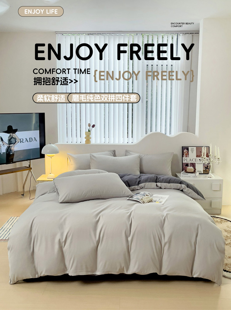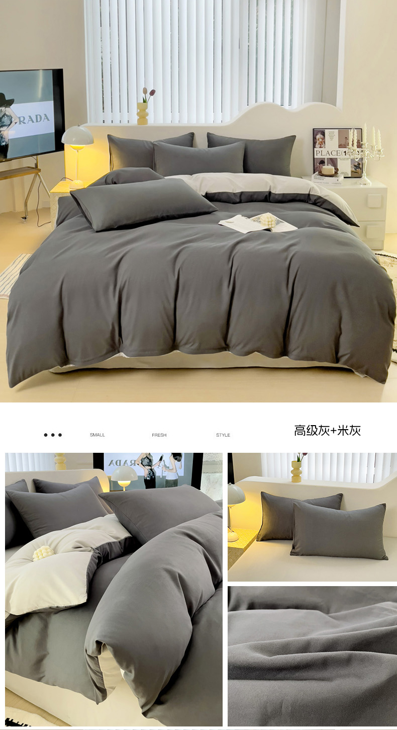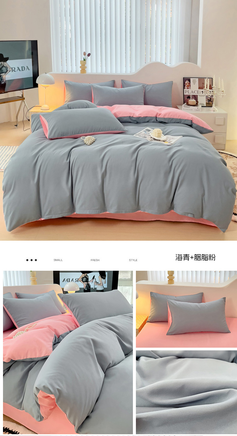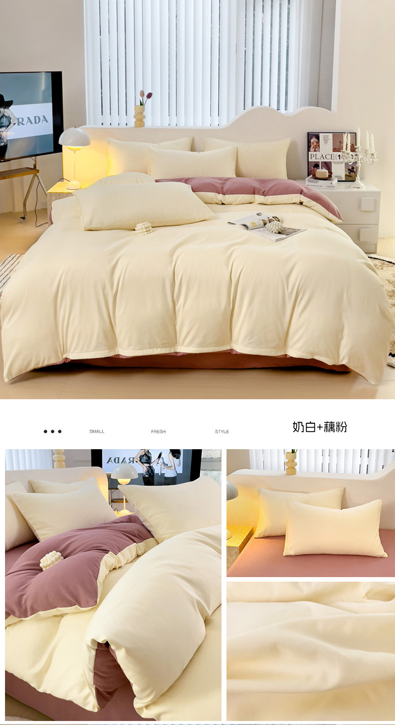 (总)(买家秀爆款花色不断货)A类母婴级纯棉磨毛四件套全棉磨毛三件套纯棉四件套全棉四件套磨毛纯色双拼四件套