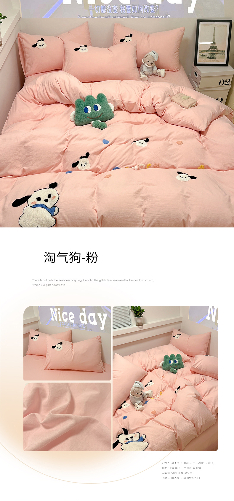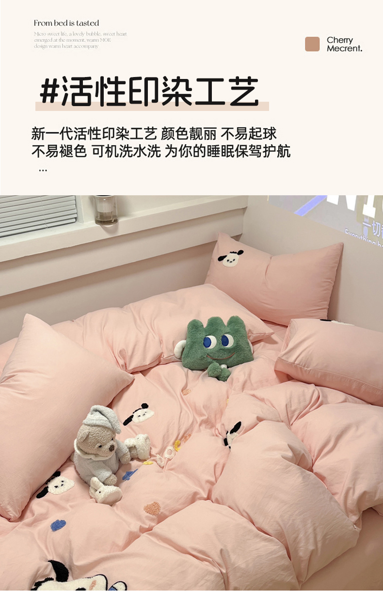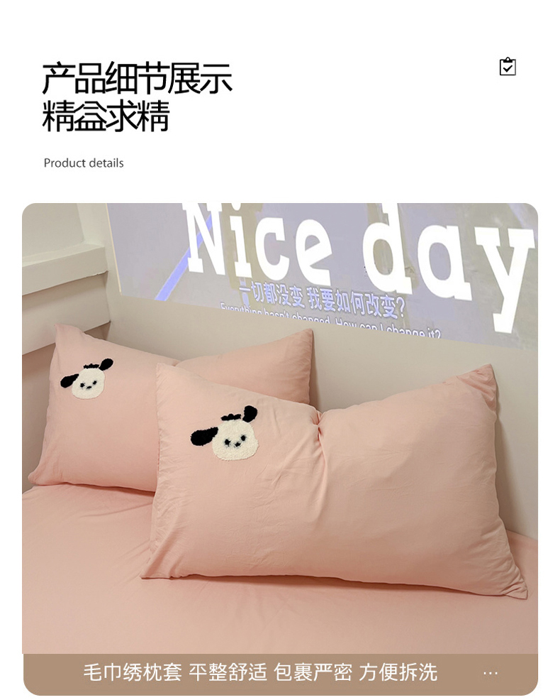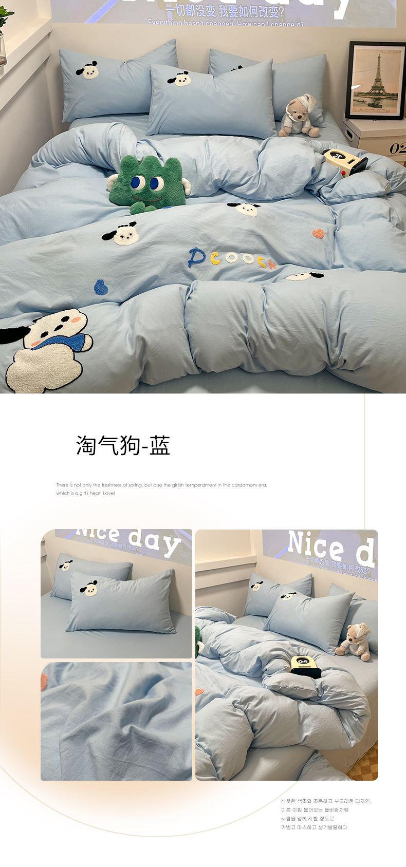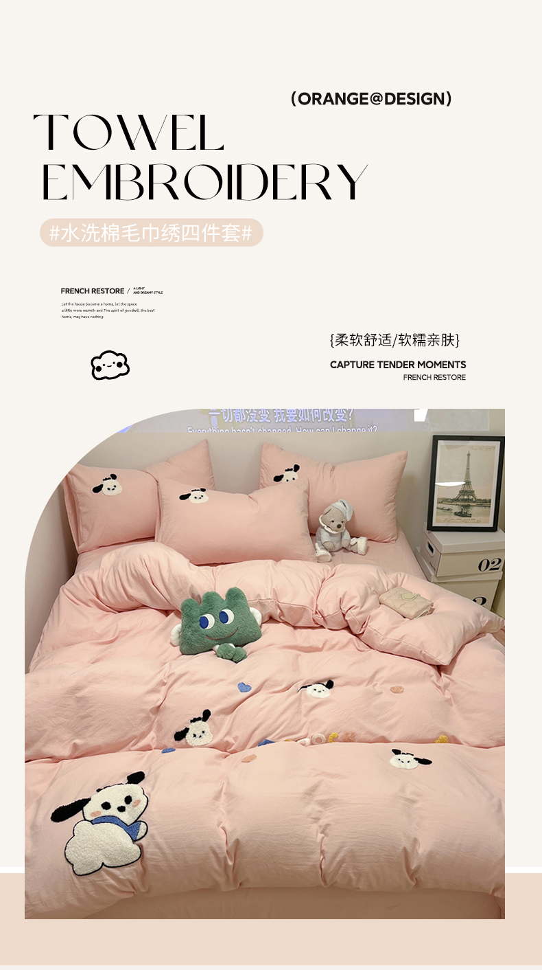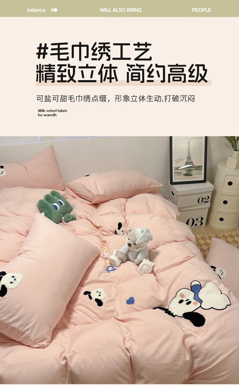 (总)(买家秀 热款花型 不断货)母婴级A类ins风水洗棉四件套水洗棉毛巾绣四件套水洗棉床笠四件套提花绣花,幸运小狗,开心熊猫,小红帽,小兔音乐会