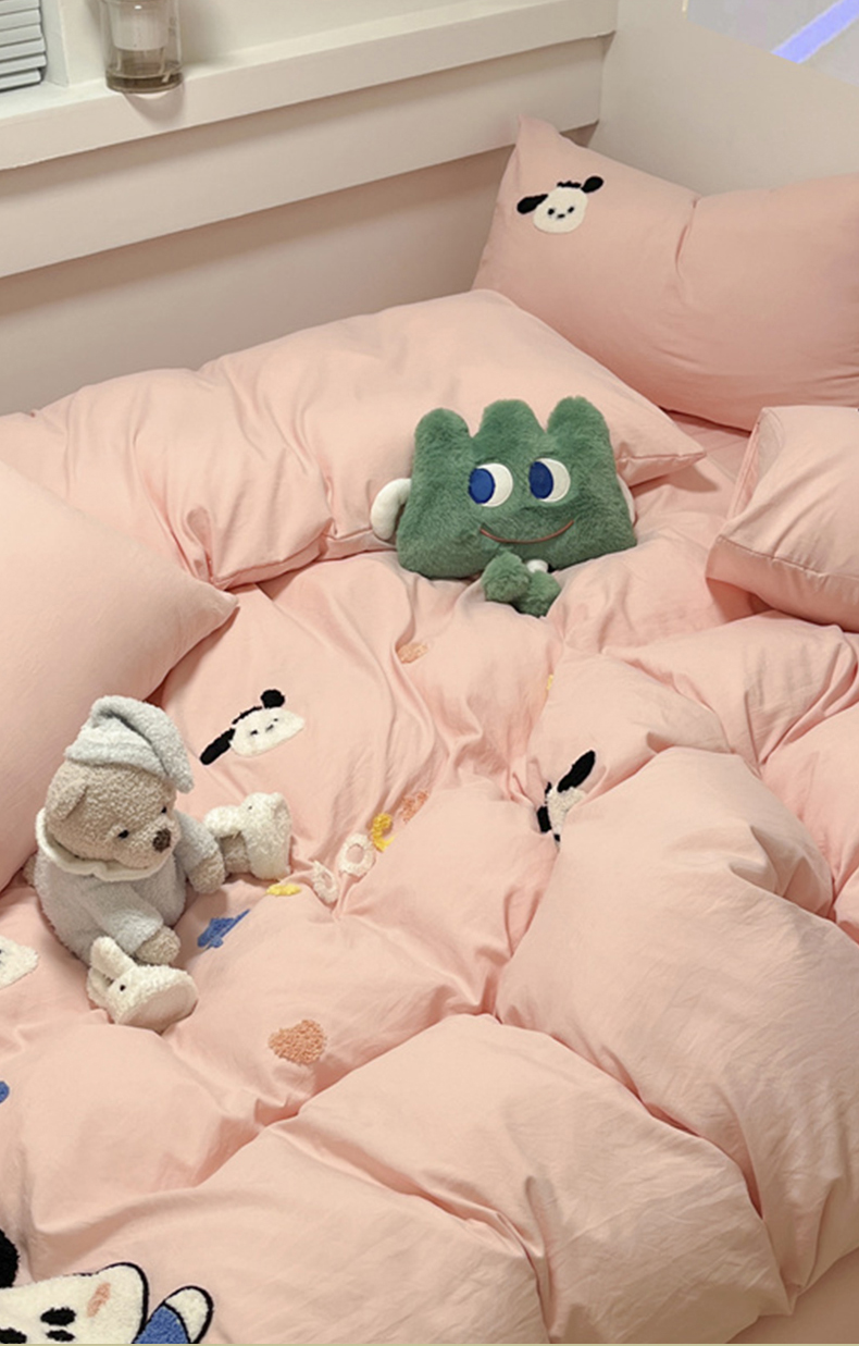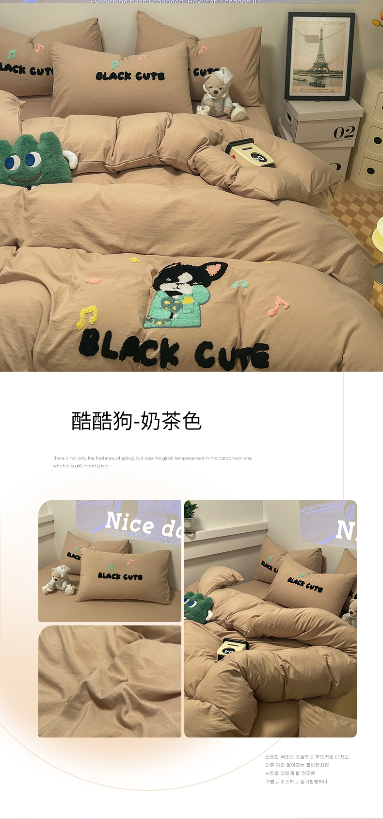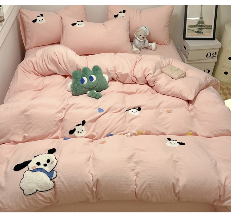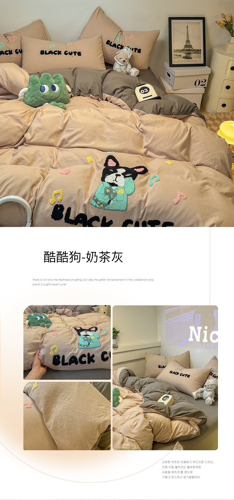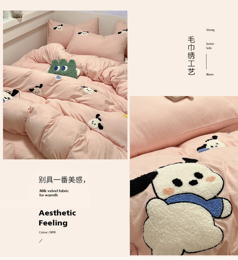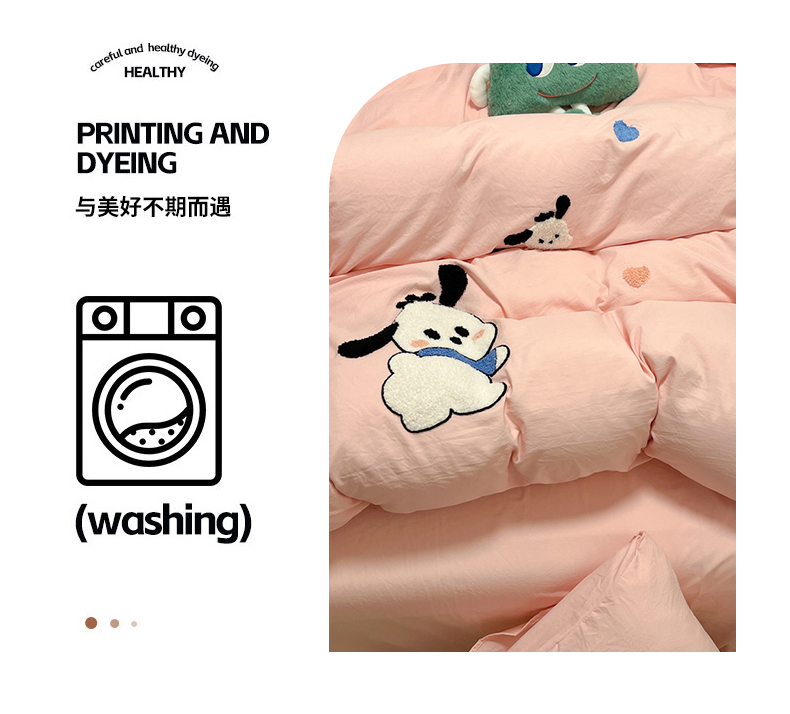 (总)(买家秀 热款花型 不断货)母婴级A类ins风水洗棉四件套水洗棉毛巾绣四件套水洗棉床笠四件套提花绣花,幸运小狗,开心熊猫,小红帽,小兔音乐会