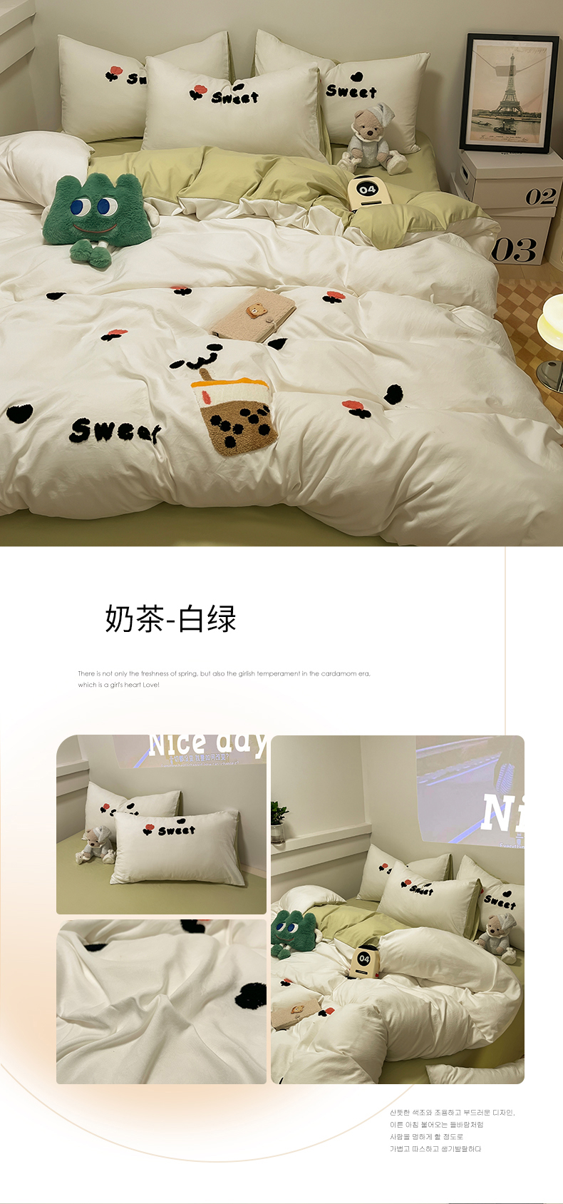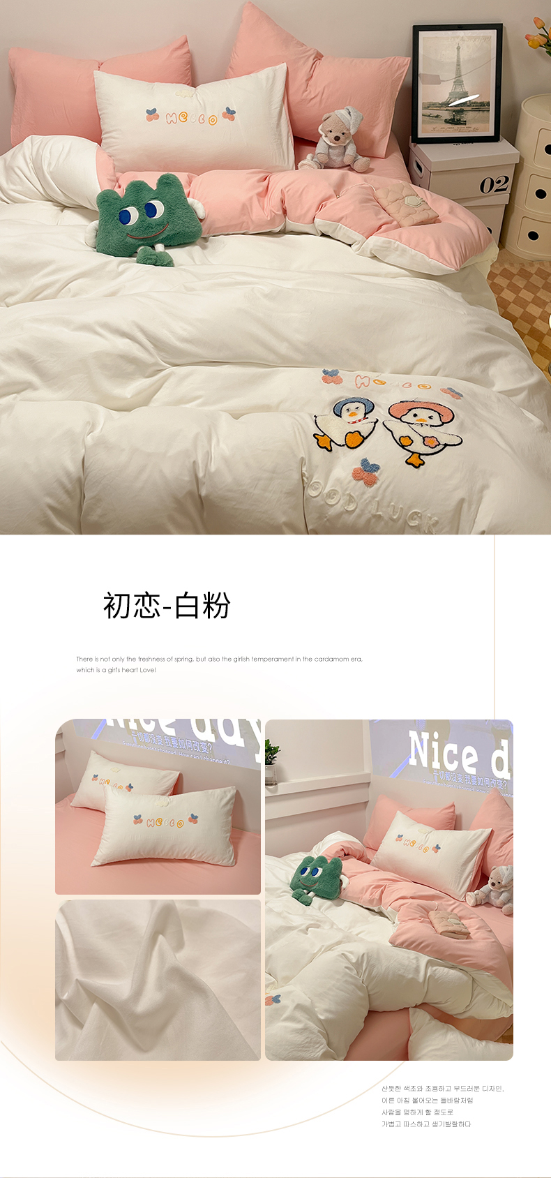 (总)买家秀热款花型不断货 母婴级A类ins风水洗棉四件套水洗棉毛巾绣四件套水洗棉床笠四件套提花绣花四件套,恐龙宝贝,花朵兔兔,面包小狗,奶油小甜甜,奶油芝士,兔伙伴,樱桃兔,优雅