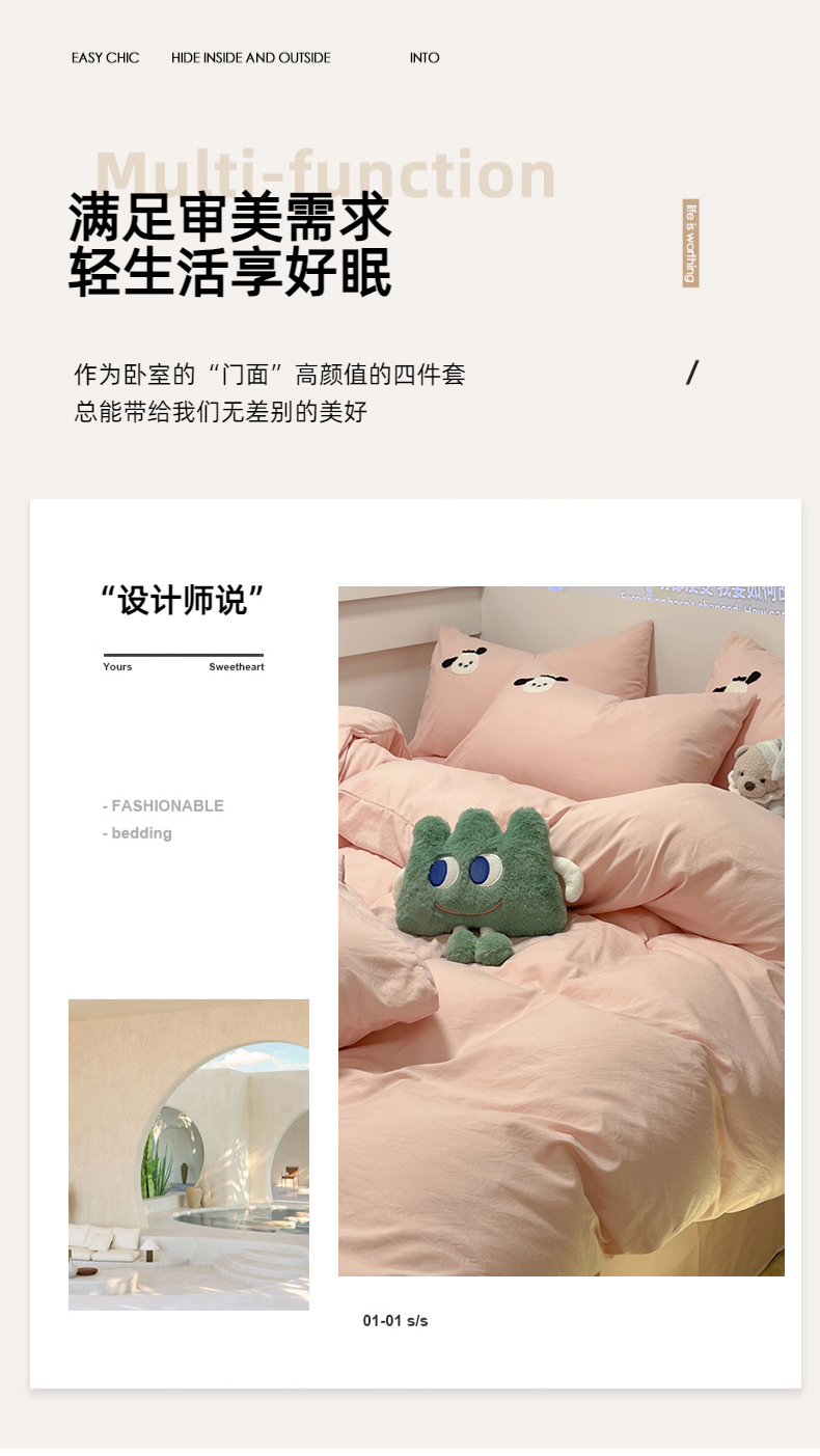 商品名称:(总)(买家秀 爆款花型长期款不断货)A类ins风水洗棉四件套水洗棉毛巾绣四件套水洗棉床笠四件套绣花四件套