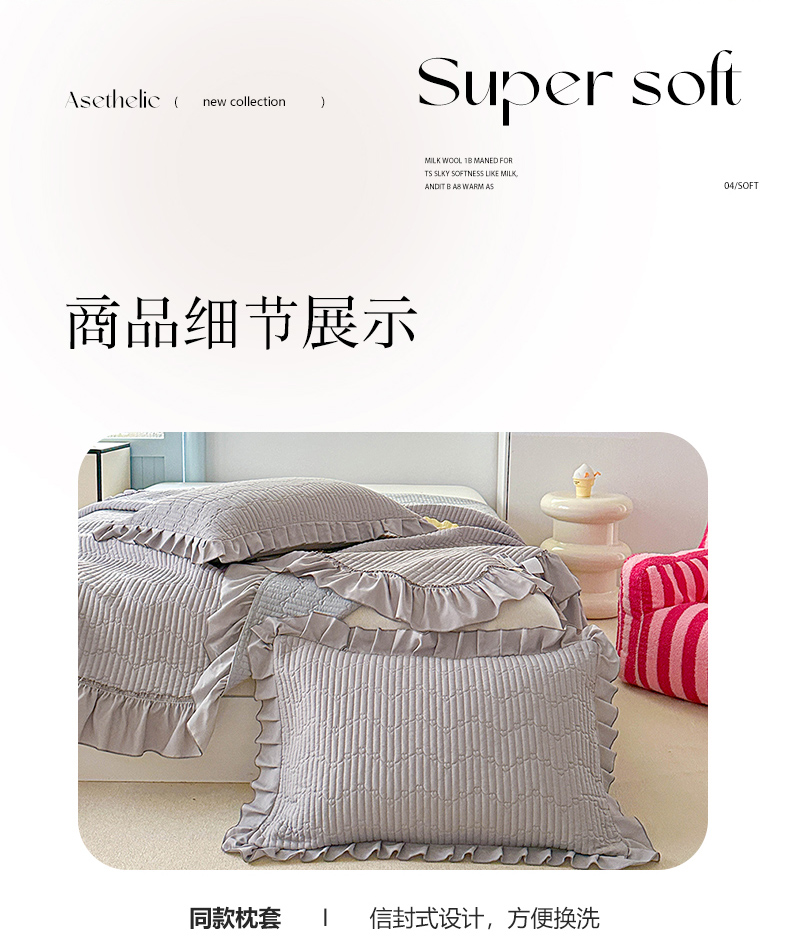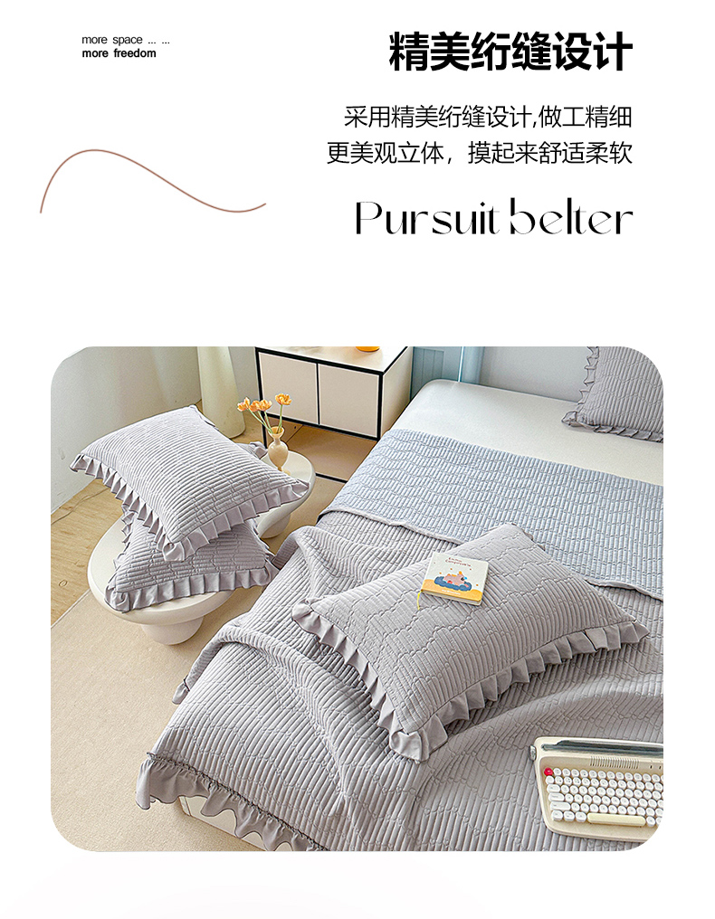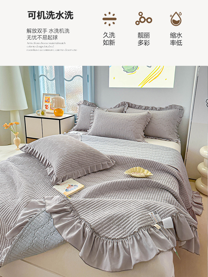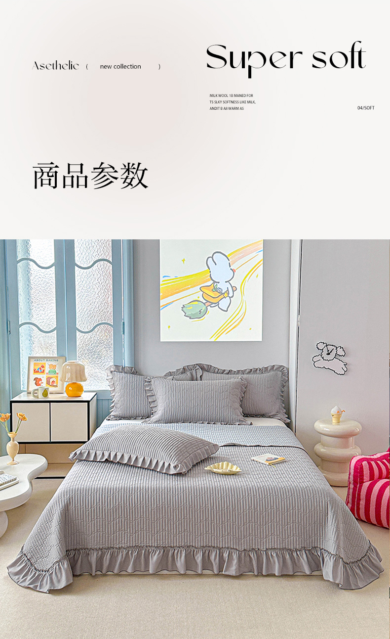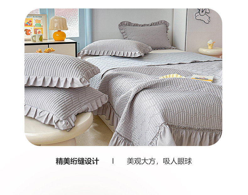 (总)源舜家纺 2025新款色织棉简约韩系花边床盖三件套,简约灰,简约粉,简约绿,简约驼,简约蓝