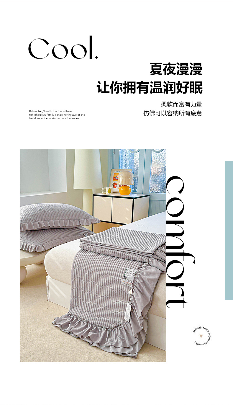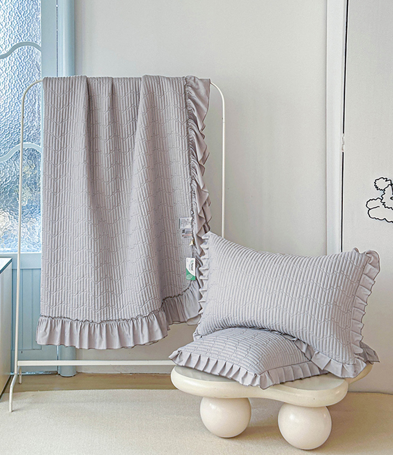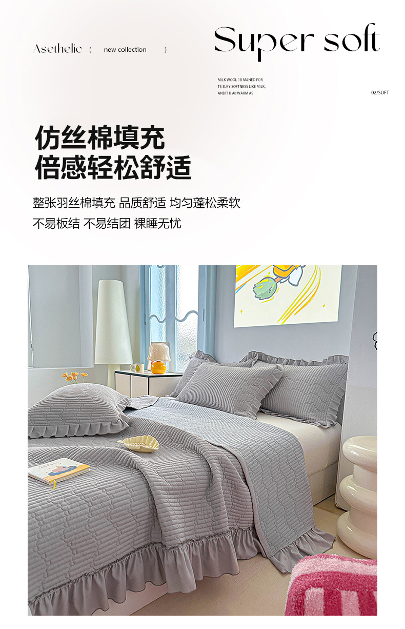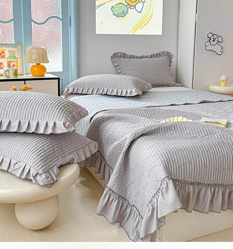 (总)源舜家纺 2025新款色织棉简约韩系花边床盖三件套,简约灰,简约粉,简约绿,简约驼,简约蓝
