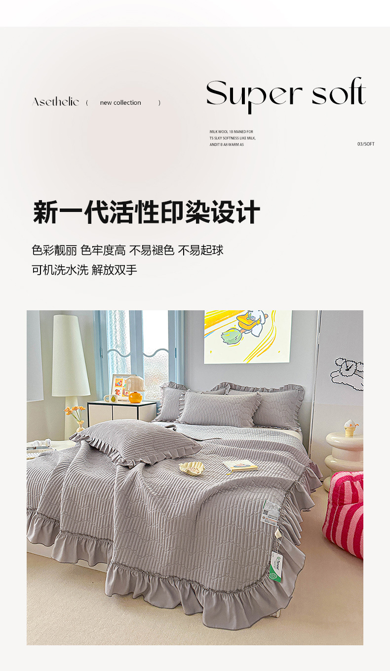 (总)源舜家纺 2025新款牛奶婴儿绒米粒绣韩系花边床盖三件套,婴儿草绿,婴儿豆沙,婴儿粉,婴儿灰,婴儿灰蓝,婴儿蓝,婴儿深绿,婴儿紫