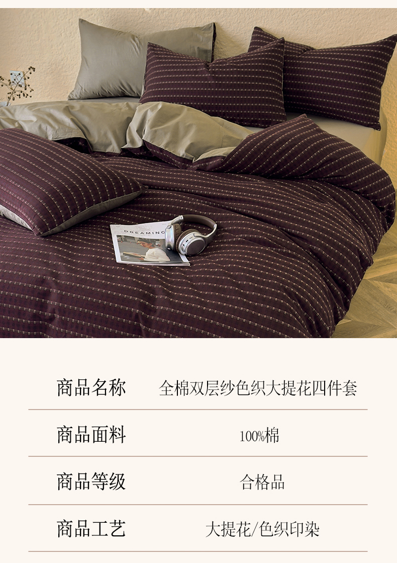 商品名称:(总)琪格格纺织 2025新款纯棉双层纱色织全棉提花四件套