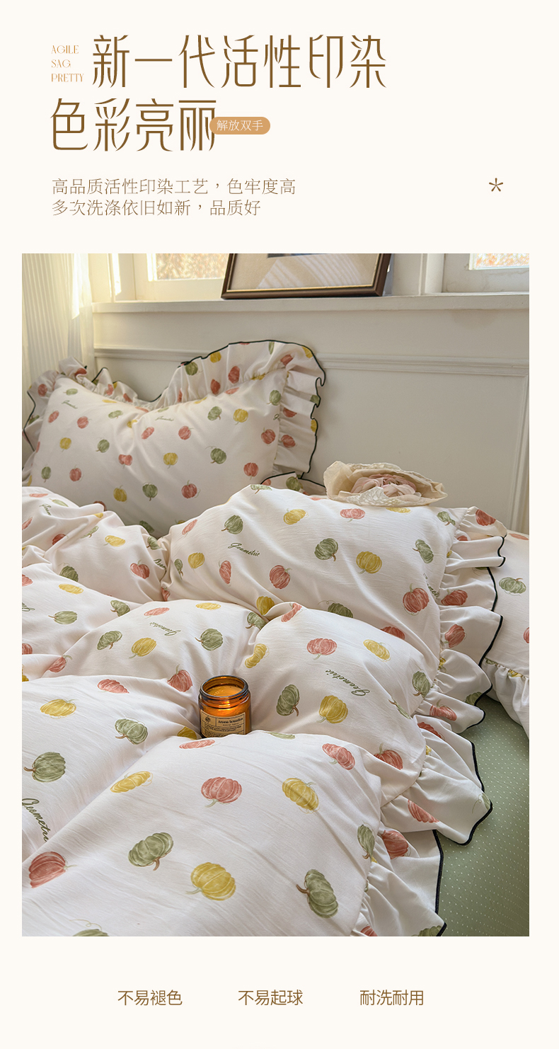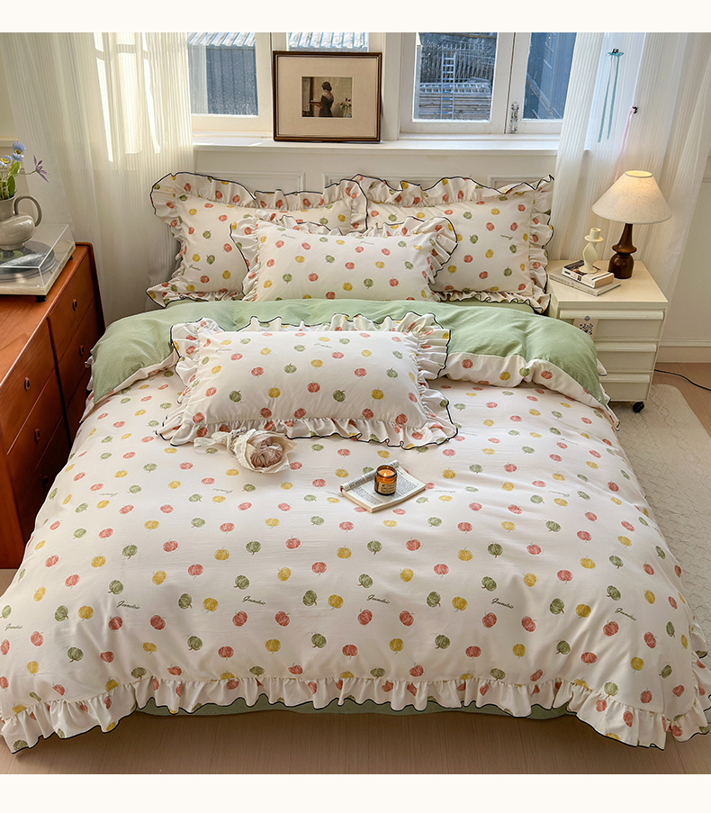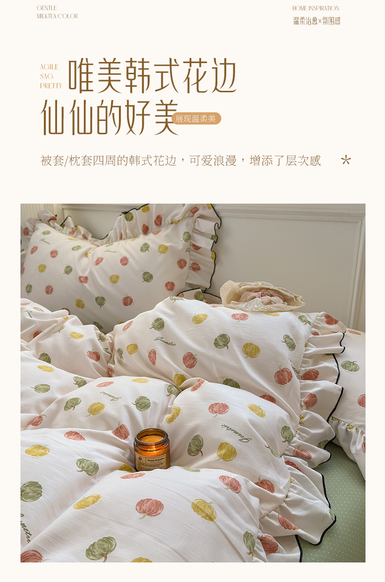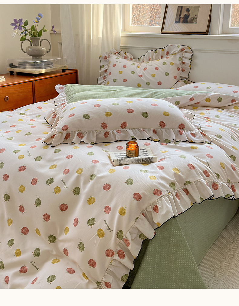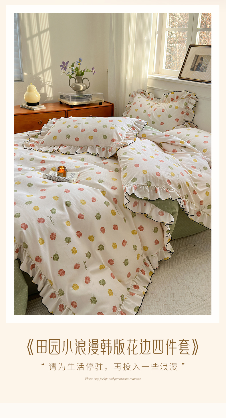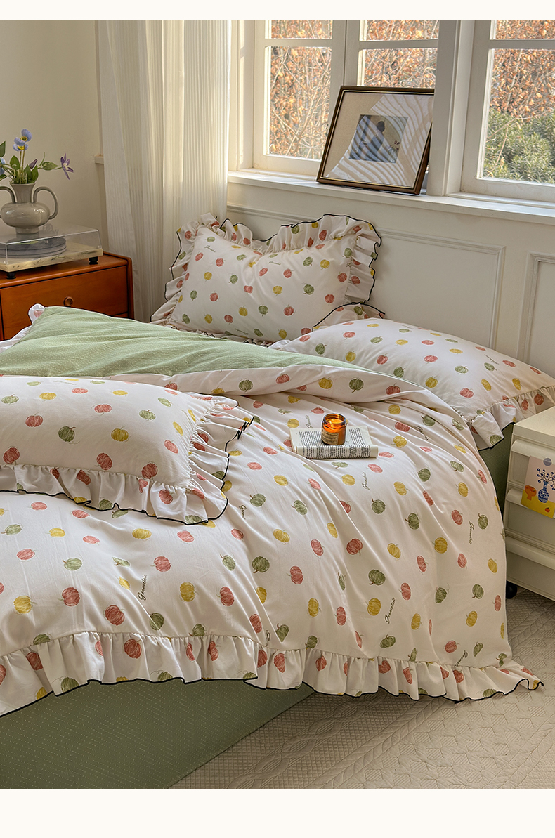 当前位置: 91家纺网 > 商品网购 > 床品套件 > 四件套 > 其它四件套 > 寐居家纺 2025新款韩版舒柔绵四件套 花边款-多彩南瓜