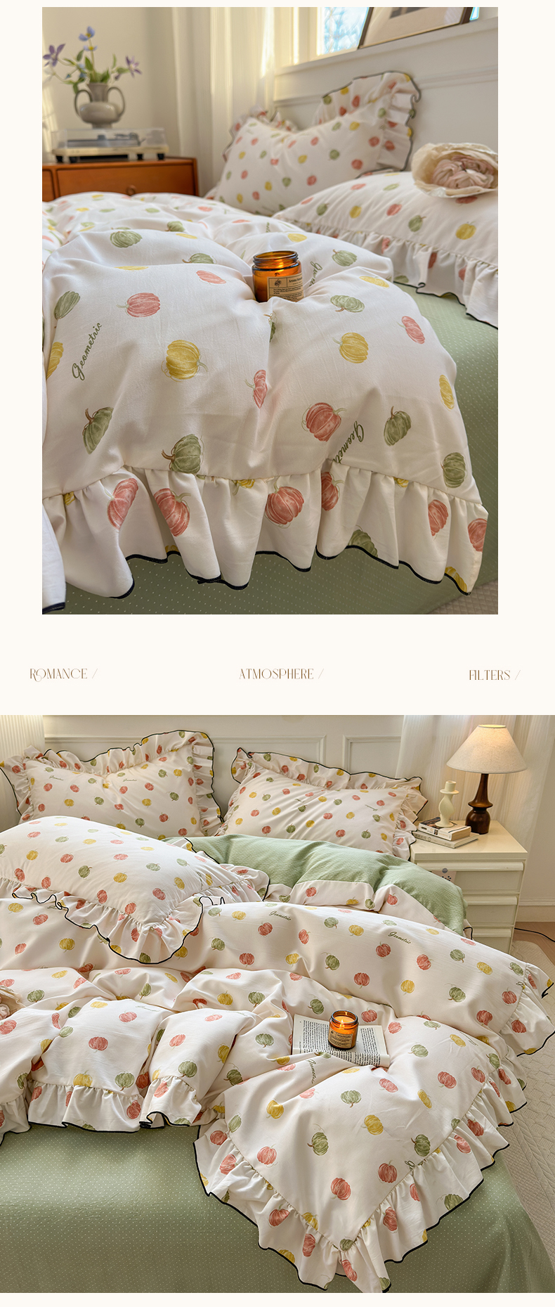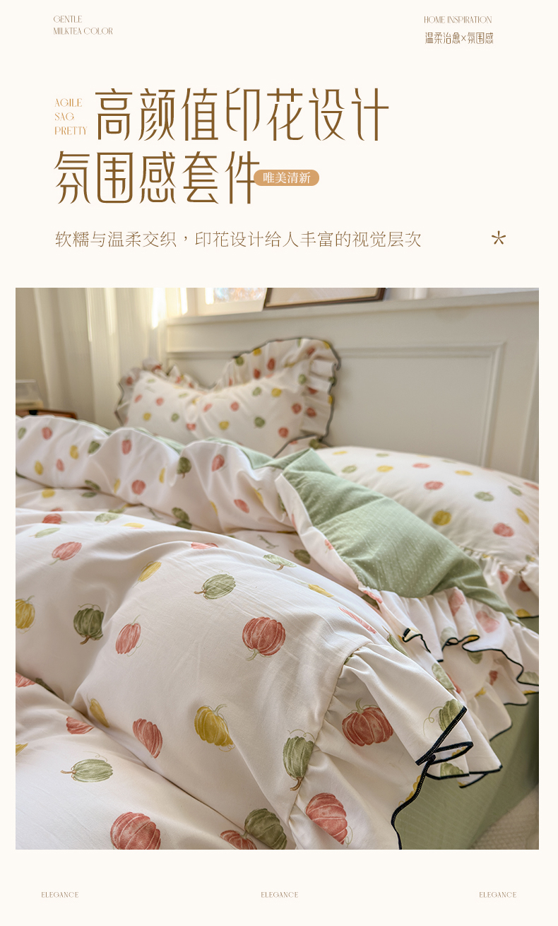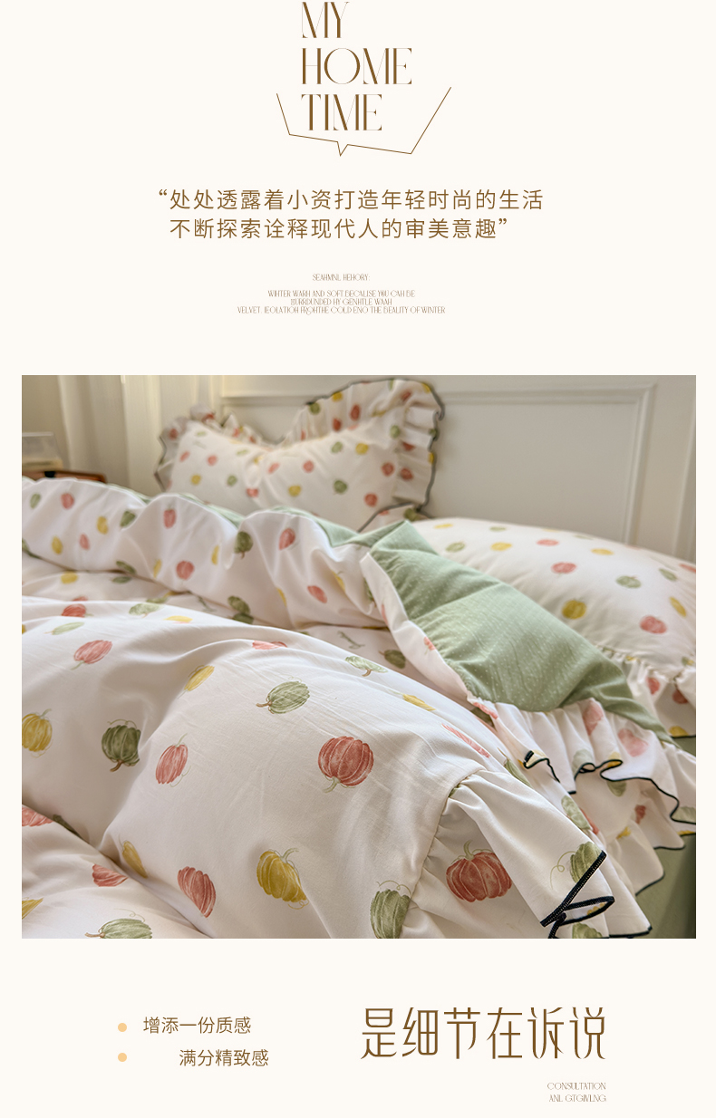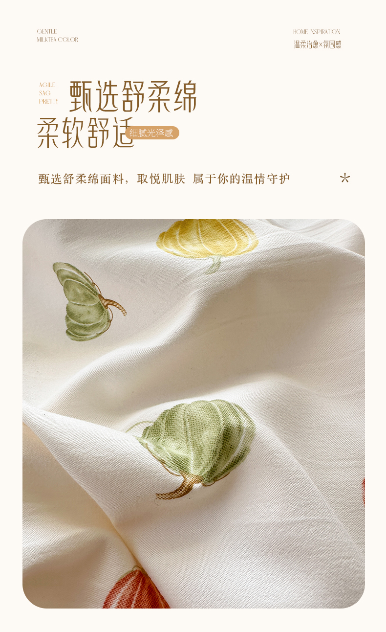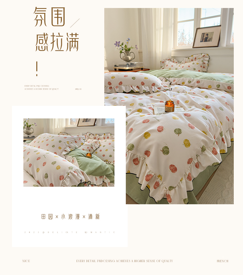 当前位置: 91家纺网 > 商品网购 > 床品套件 > 四件套 > 其它四件套 > 寐居家纺 2025新款韩版舒柔绵四件套 花边款-多彩南瓜
