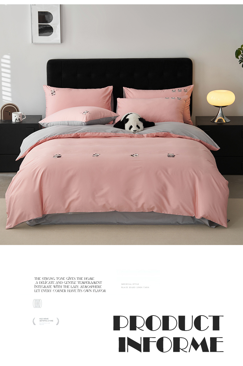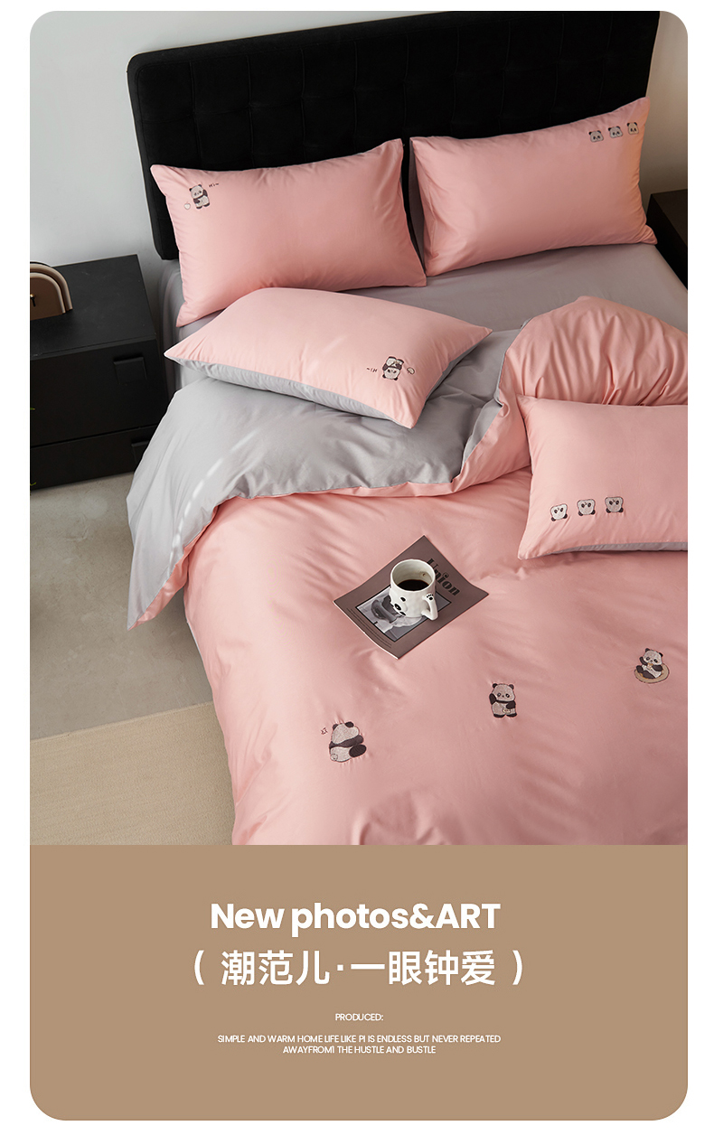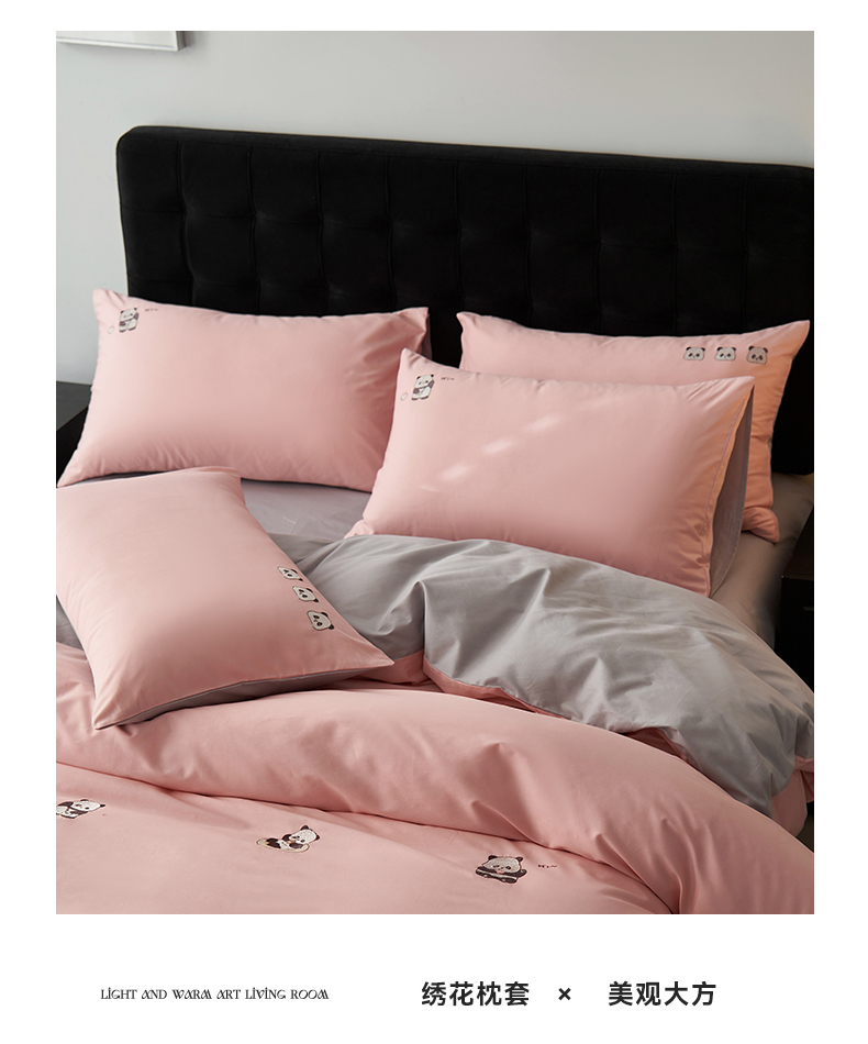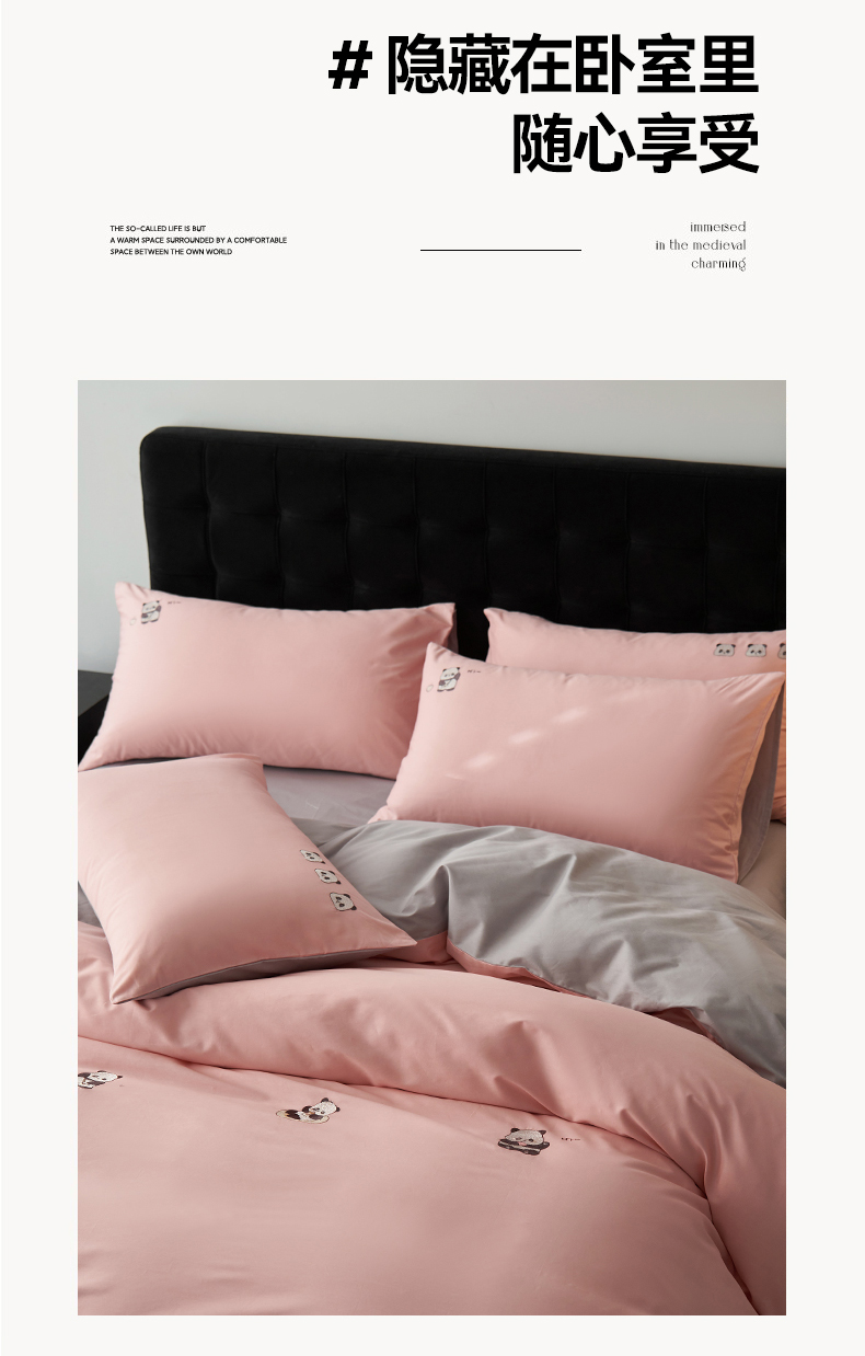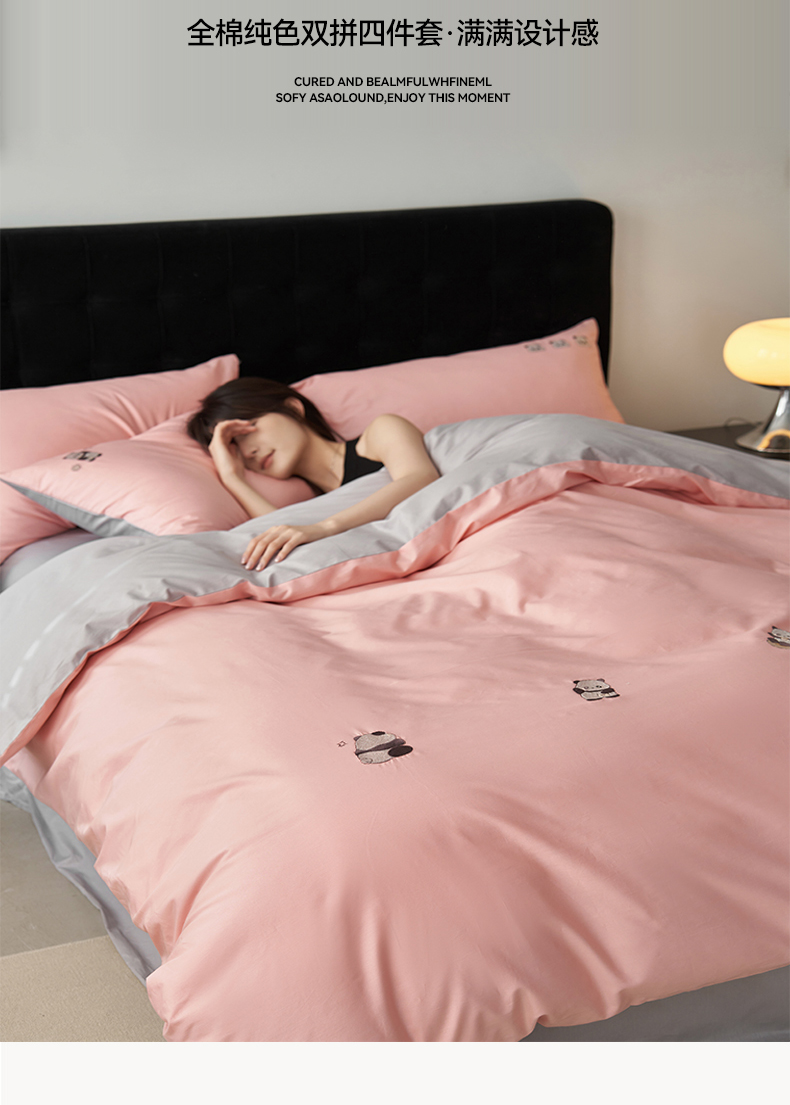 鼎飞家纺 2025新款全棉纯色双拼套件 肉粉浅灰