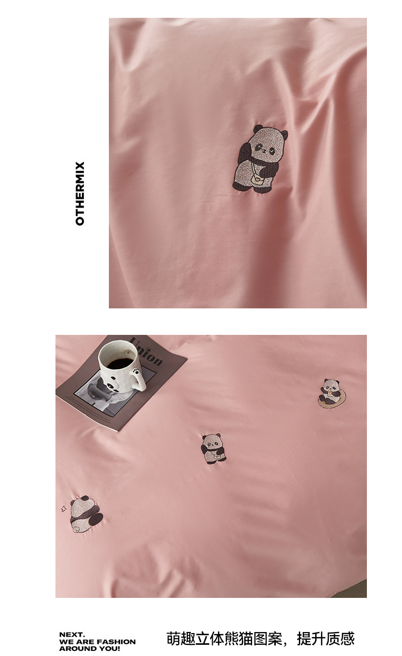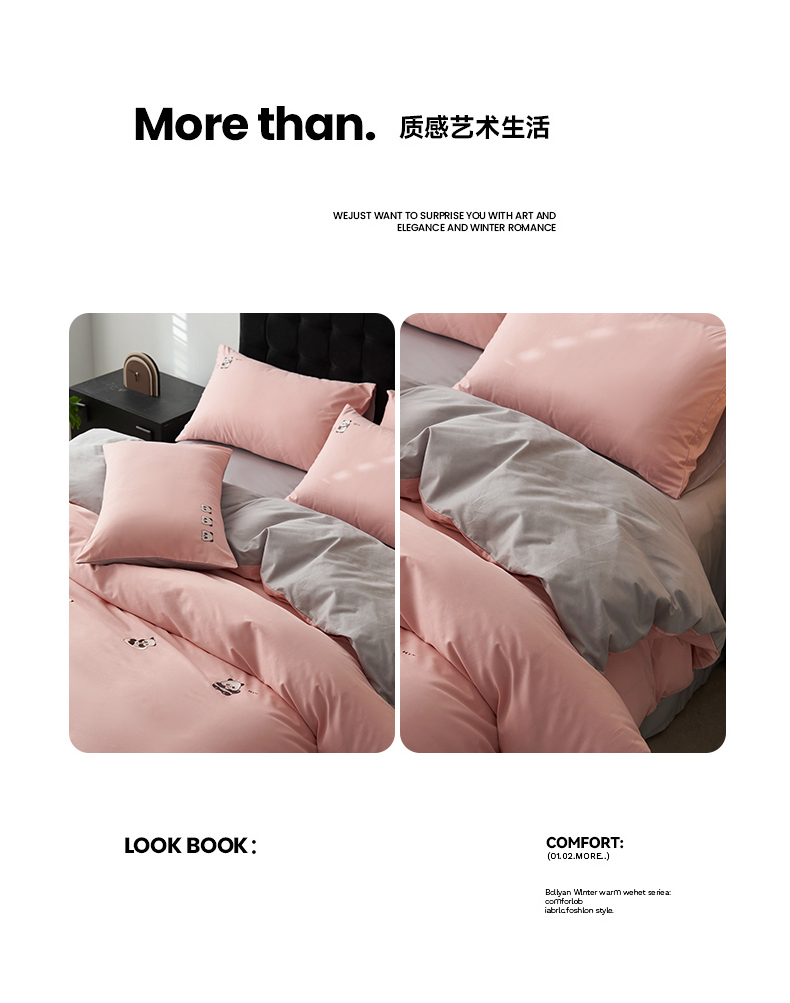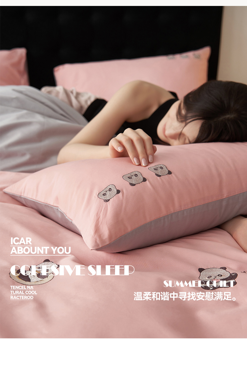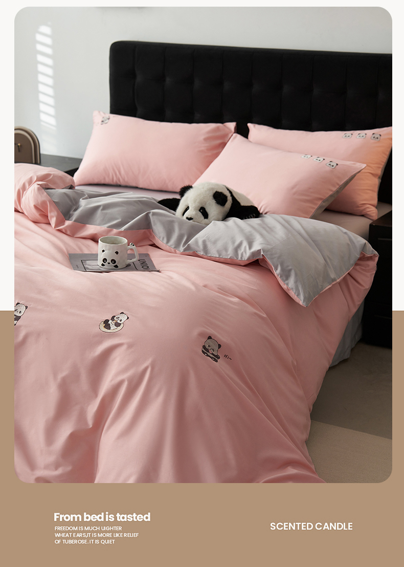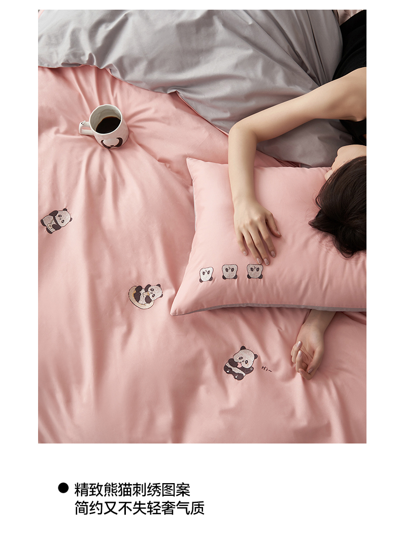 鼎飞家纺 2025新款全棉纯色双拼套件 肉粉浅灰