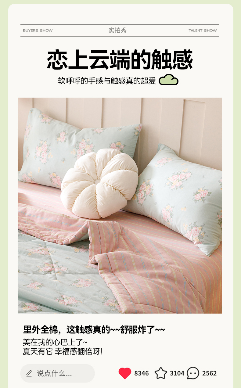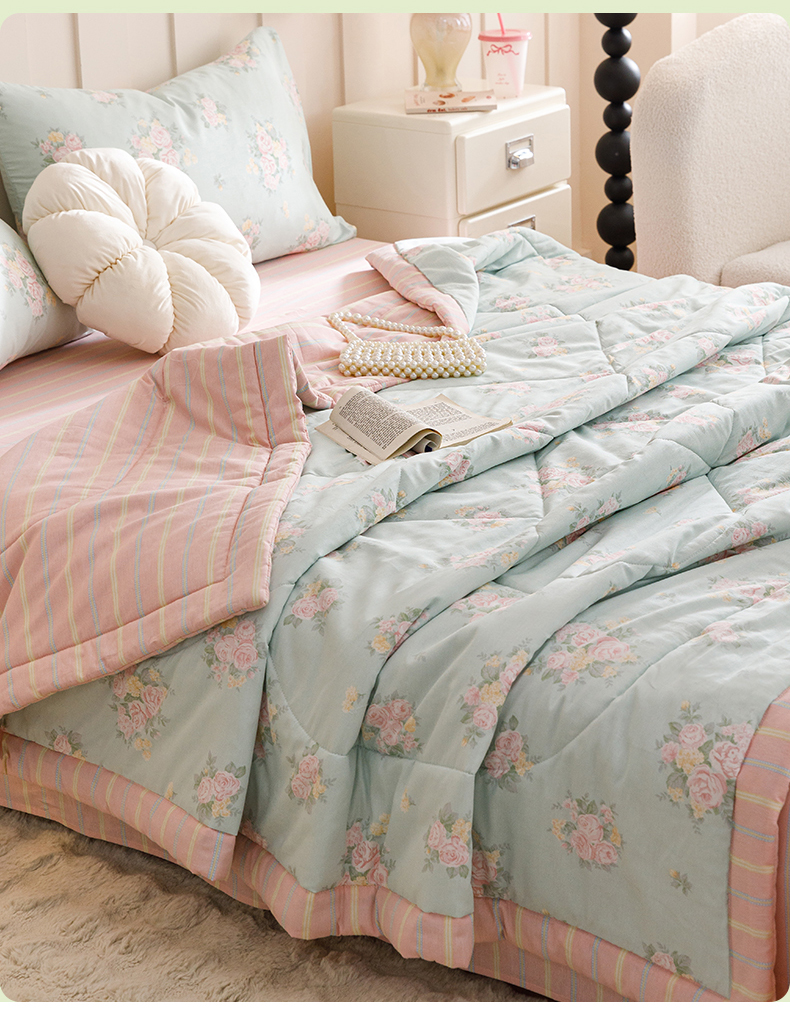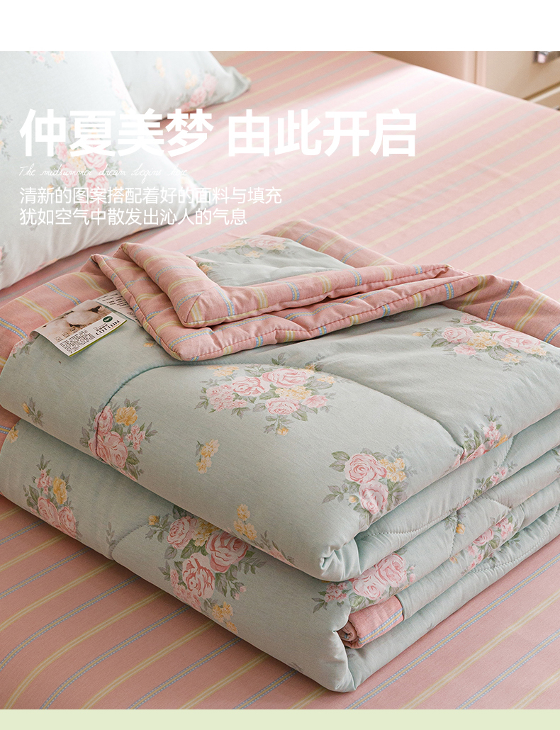 恬思语家纺 2025新款全棉印花棉花夏被夏枝花语