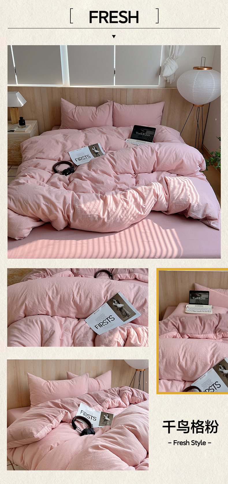 当前位置: 91家纺网 > 商品网购 > 床品套件 > 四件套 > 全棉普通四件套 > 雅居纺家纺 2025全棉色织水洗棉四件套 千鸟格粉