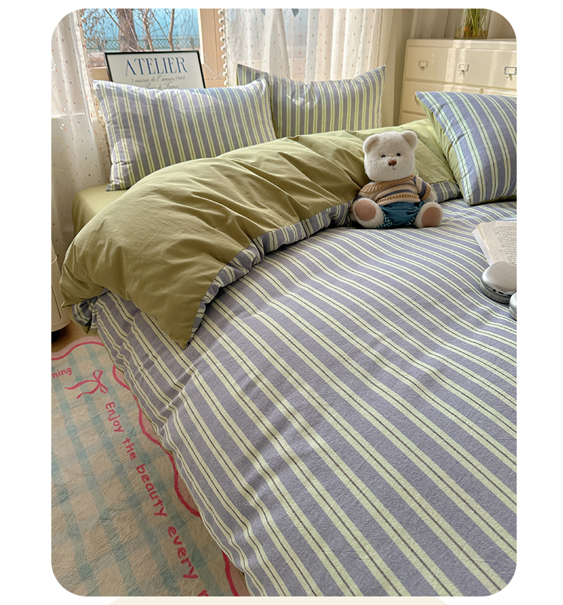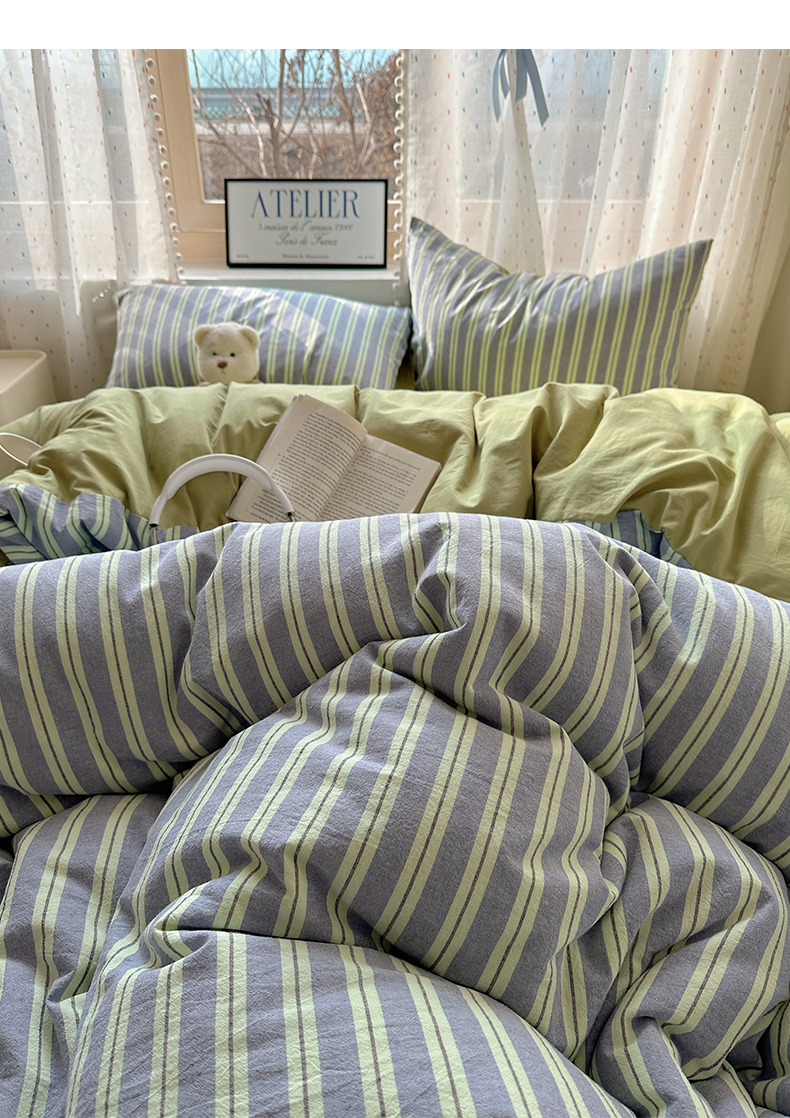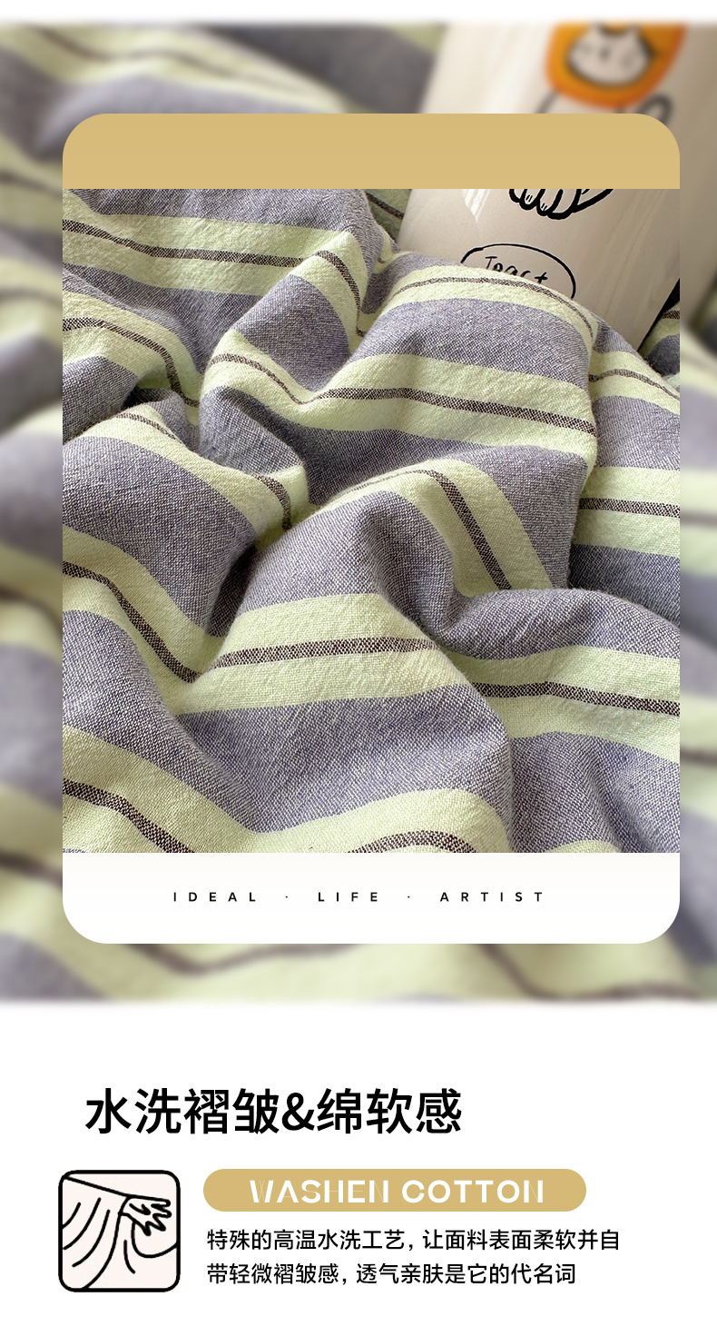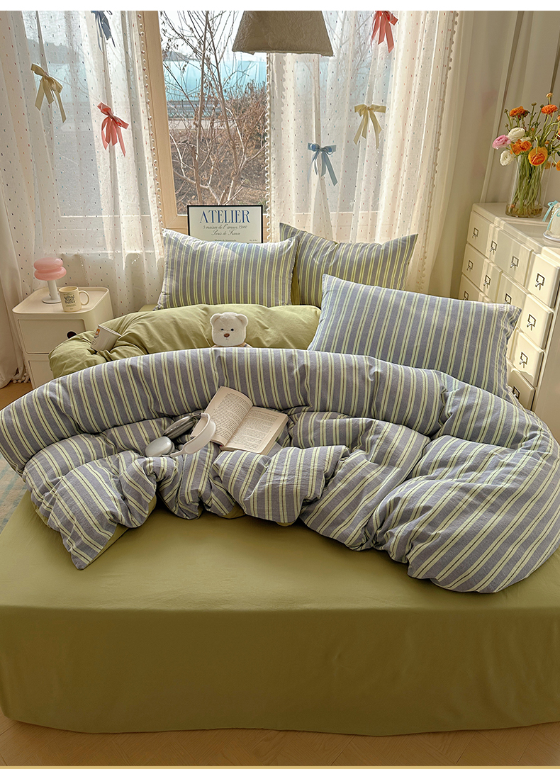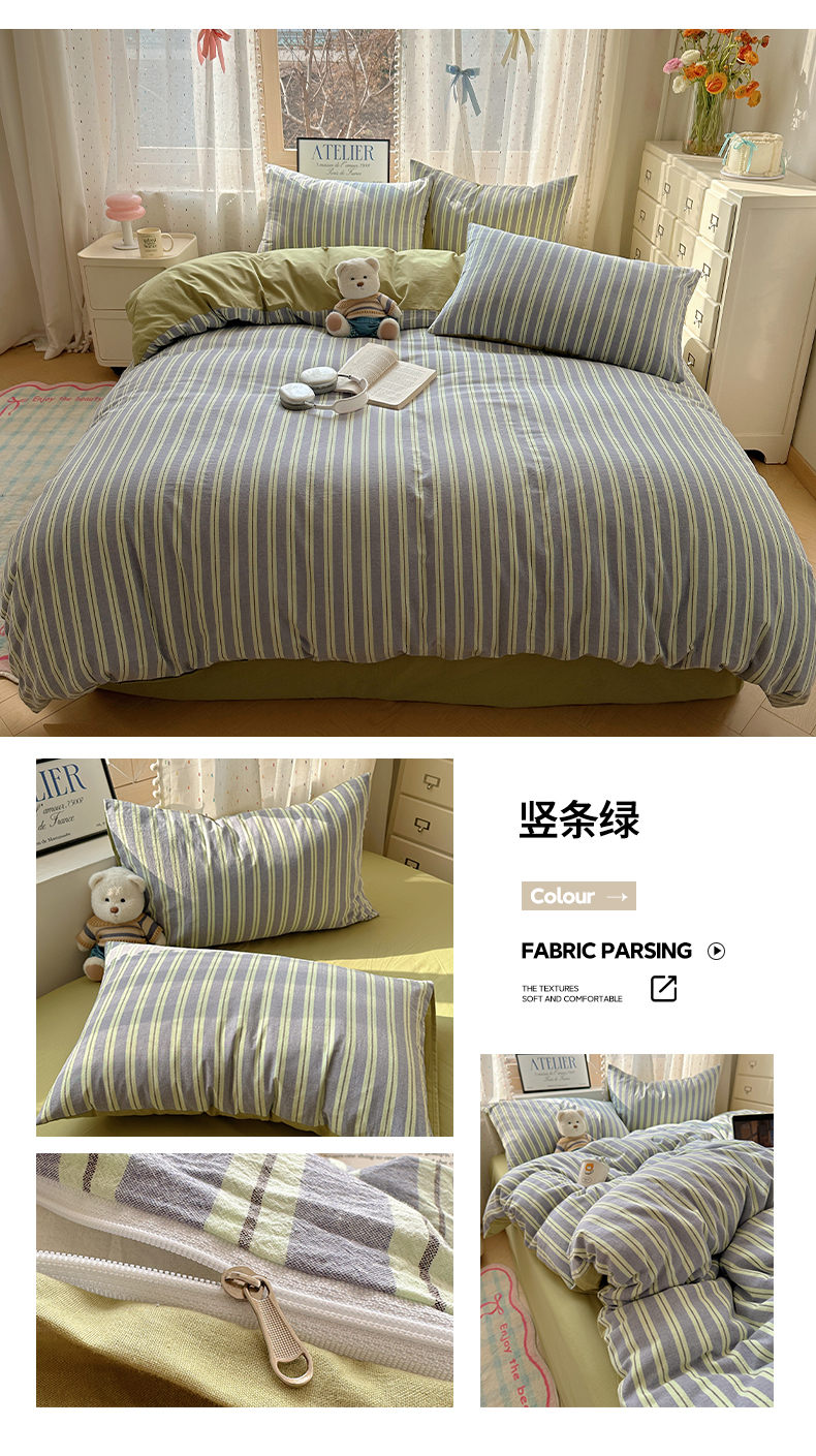 当前位置: 91家纺网 > 商品网购 > 床品套件 > 四件套 > 全棉普通四件套 > 雅居纺家纺 2025全棉色织水洗棉四件套 竖条绿