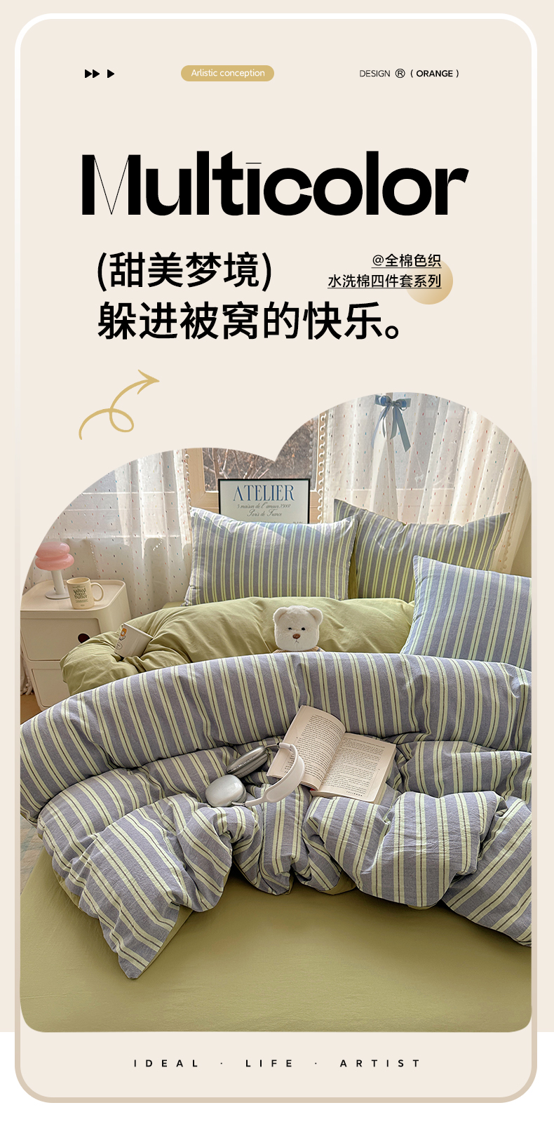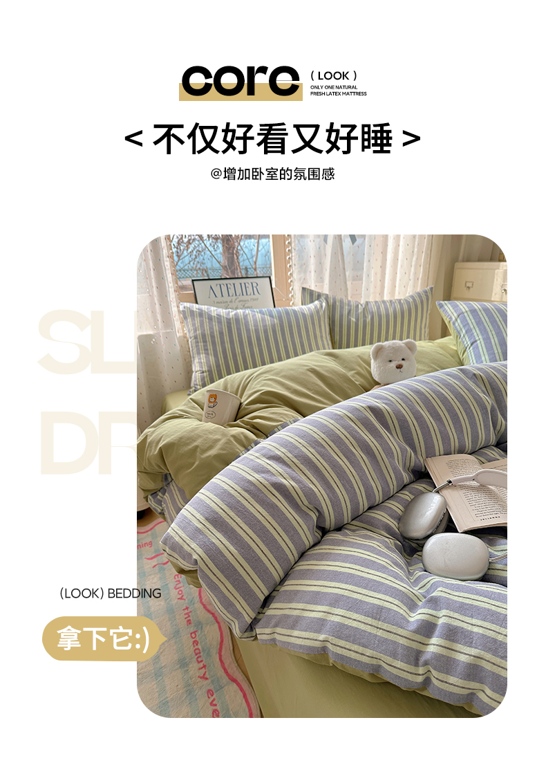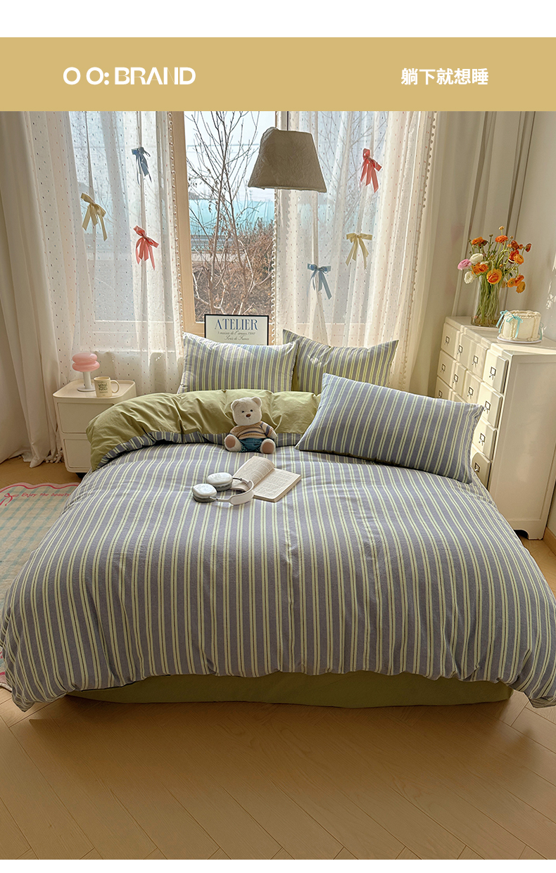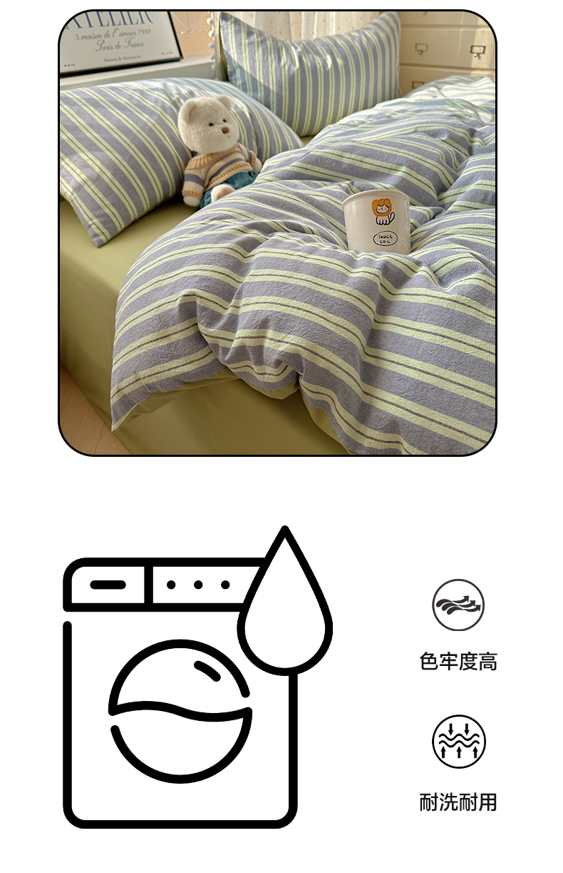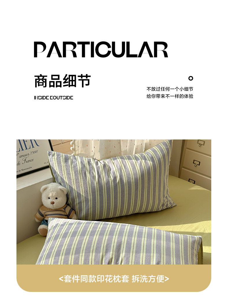 当前位置: 91家纺网 > 商品网购 > 床品套件 > 四件套 > 全棉普通四件套 > 雅居纺家纺 2025全棉色织水洗棉四件套 竖条绿