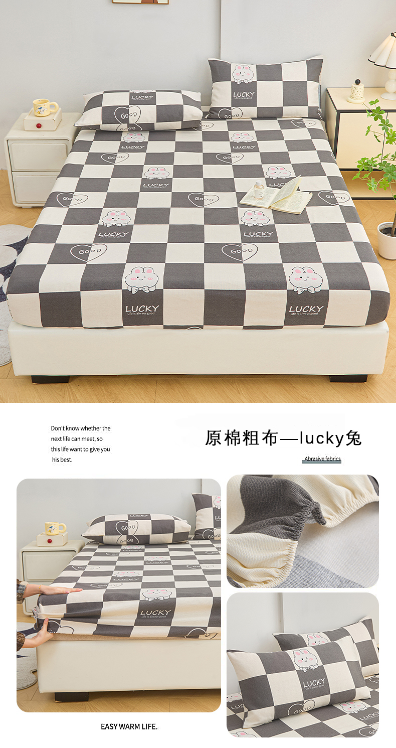 • 91家纺网 家纺一手货源 找家纺 棉乐町家居  2025新款原棉粗布床笠 lucky兔
