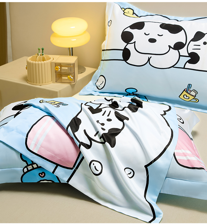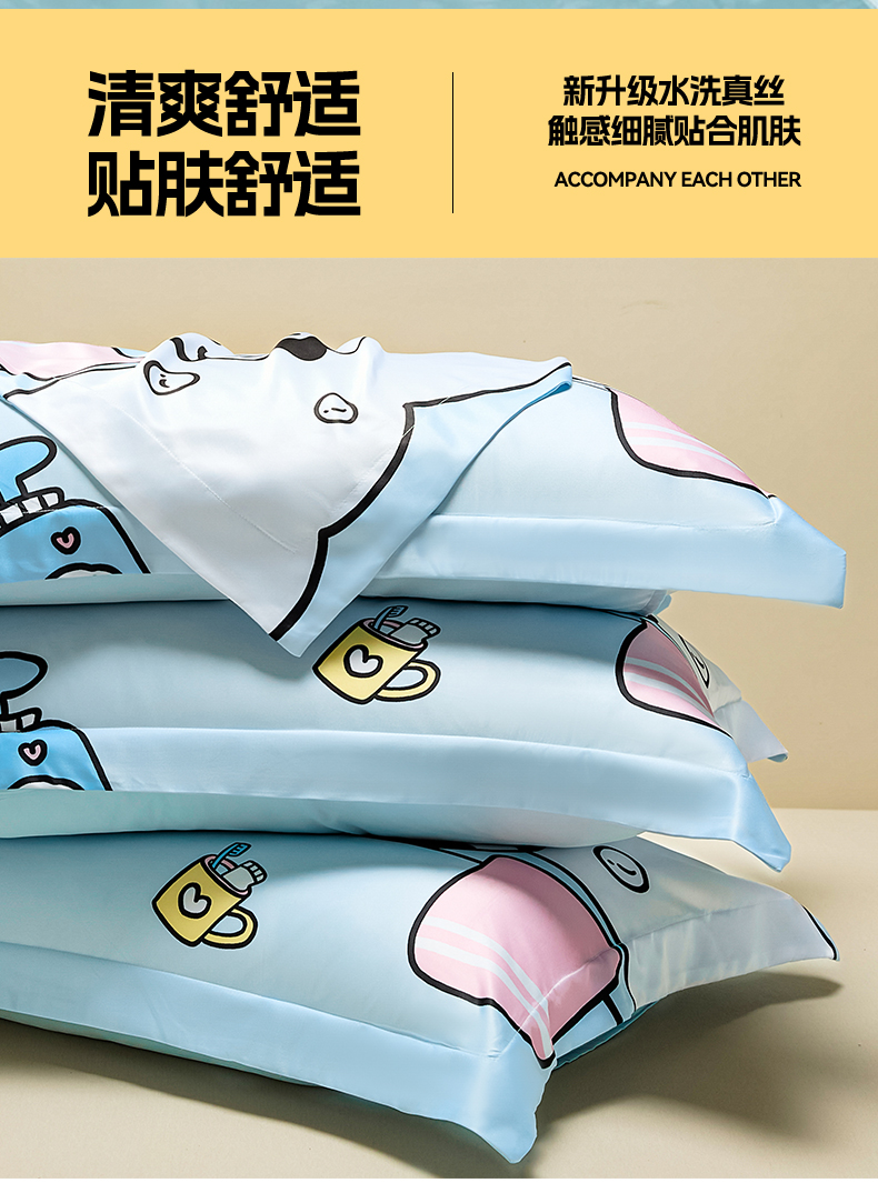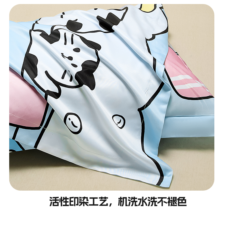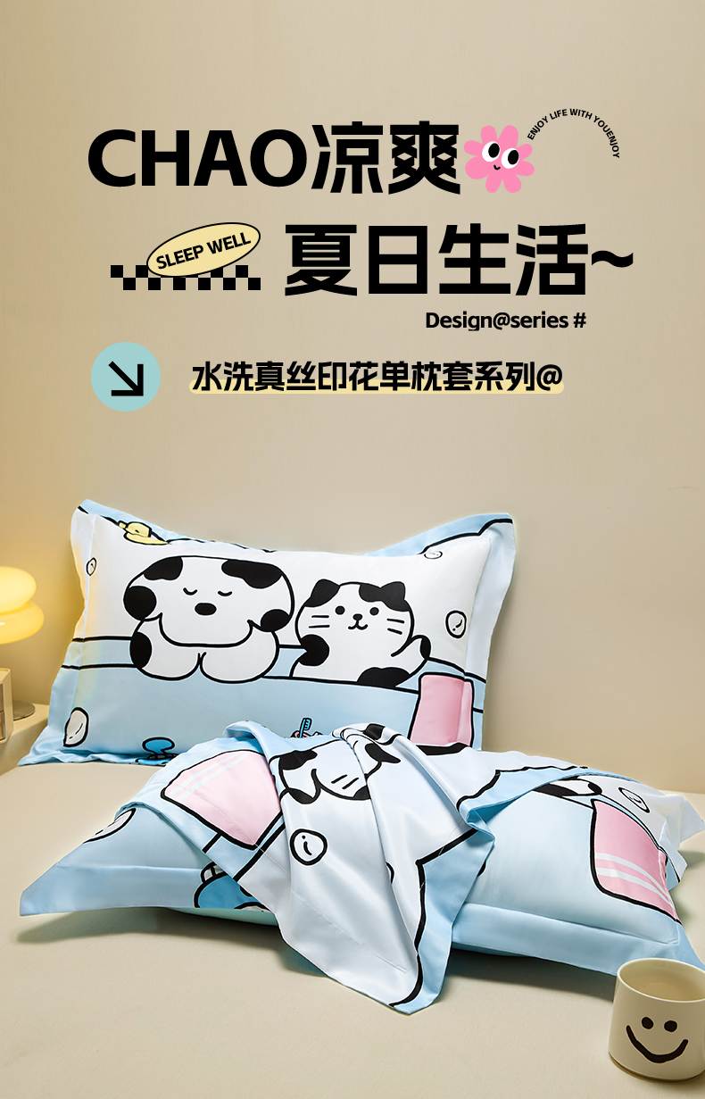笙意家纺 2025新款水洗真丝数码印花卡通枕套 萌宠猫狗