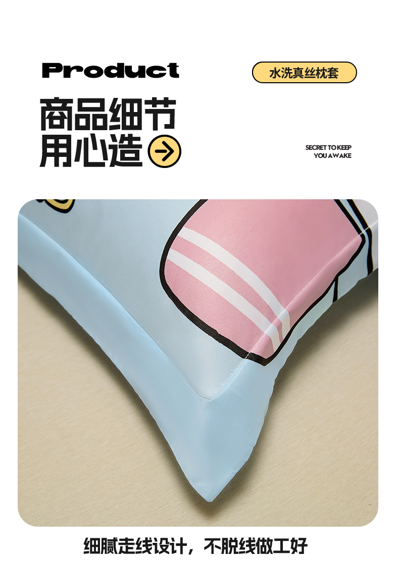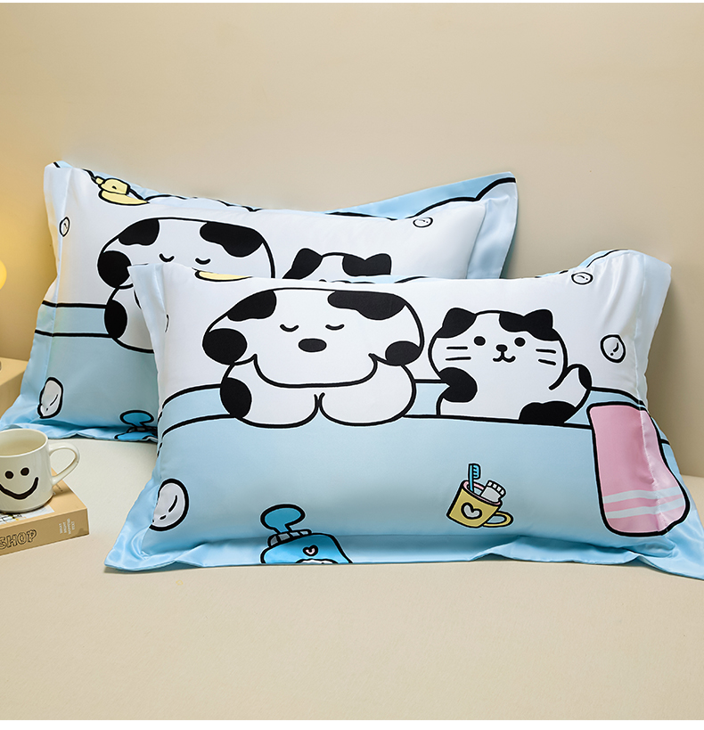 商品名称:笙意家纺 2025新款水洗真丝数码印花卡通枕套 萌宠猫狗