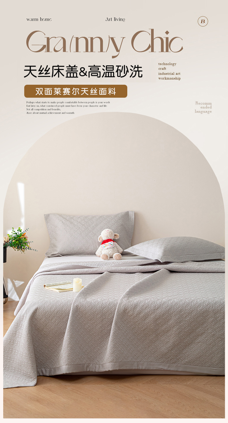 商品名称:漫时光 2025春夏新款纯色双面莱赛尔天丝砂洗床盖三件套 天丝-烟灰