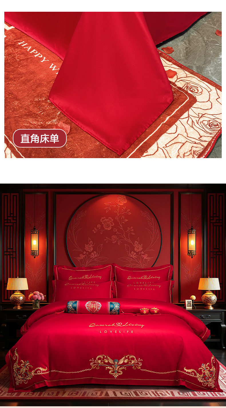 (总)花愿(原花纪) 2025新款水洗棉刺绣婚庆四件套系列,丹枫迎喜,欢喜,良缘,龙凤欢喜,玫瑰之恋,美满,如意,天禧,唯一,喜爱,心心相印,幸福,永恒之恋,钟爱一生