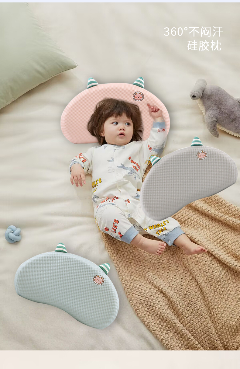 商品名称:小猫派2025新款冰感硅胶儿童舒睡枕 枕头枕芯 硅胶恐龙蓝