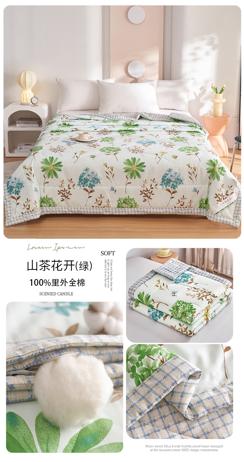 商品名称:羽梦家纺 2025新款新疆棉花全棉夏凉被被子被芯 山茶花开绿