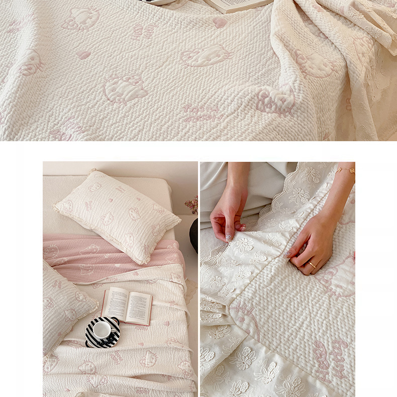 商品名称:麻依 2025新款韩国清新全棉纱布床盖三件套 奶盖KT