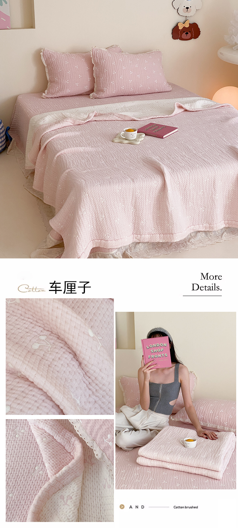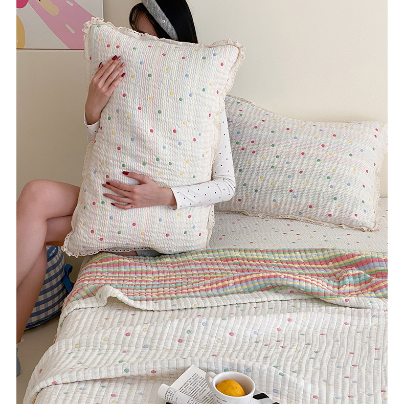 (总)麻依 2025新款韩国清新全棉纱布床盖三件套,憨憨熊,彩色南瓜,车厘子,两颗草莓,奶盖KT,奶油波点-灰,奶油彩点,水蓝KT,水墨花,丝带,桃心-米白,小猫鱼