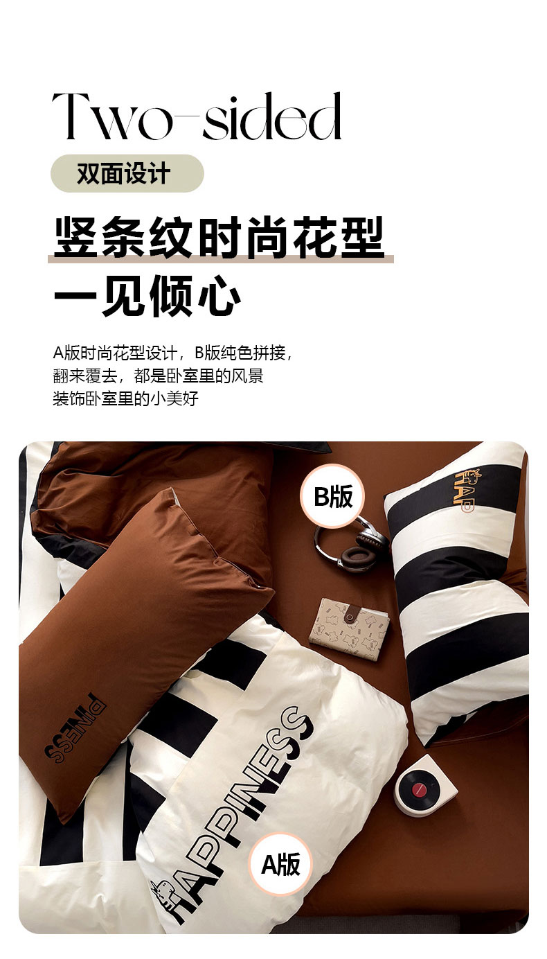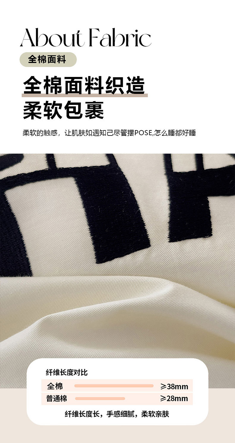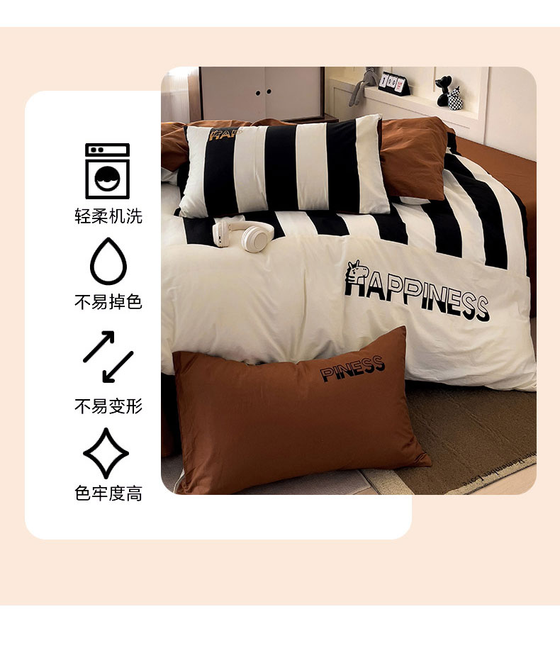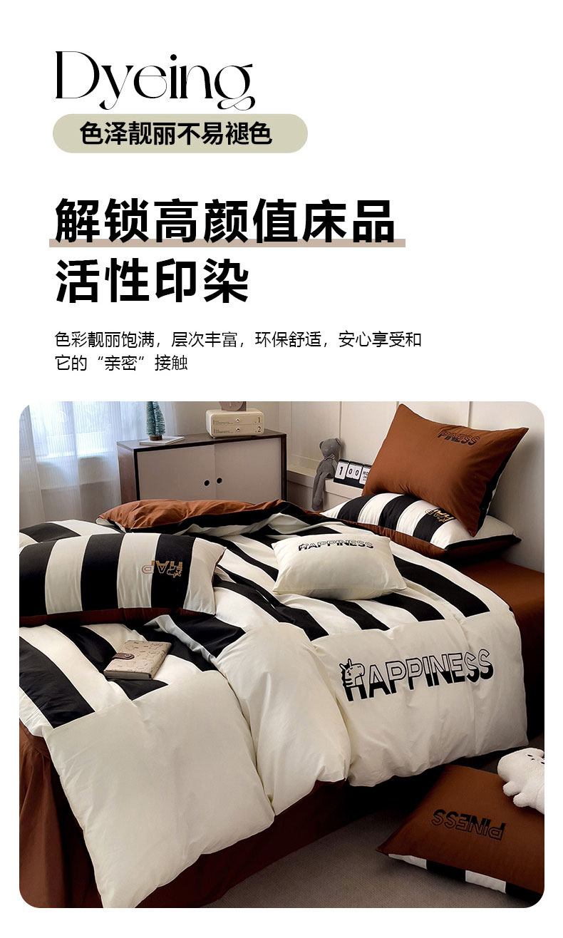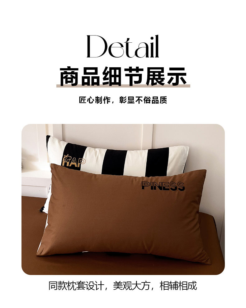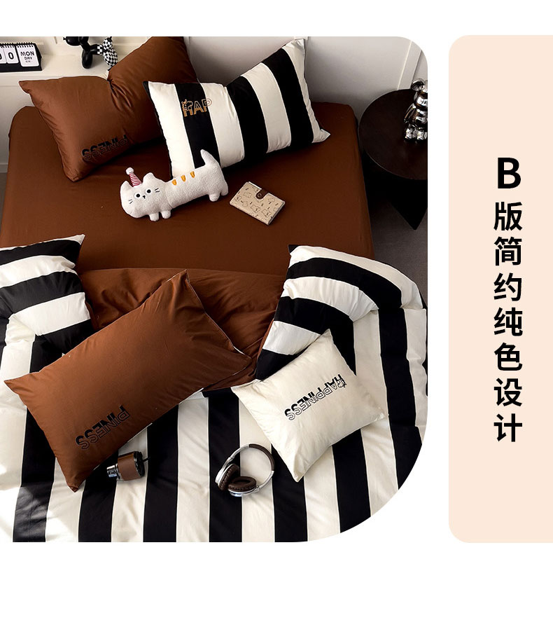 商品名称:娜娜 2025新款全棉拼接条纹绣花四件套 马克-宽条黑