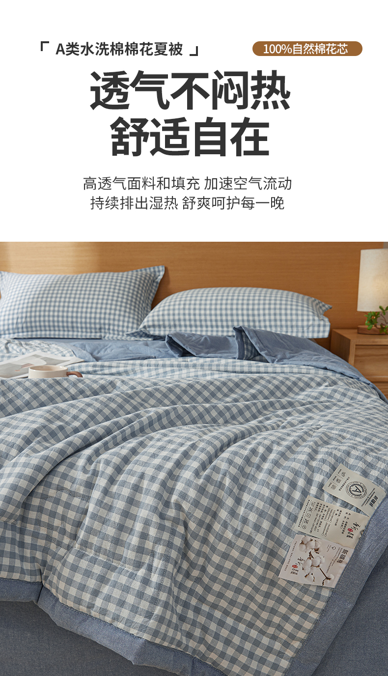 商品名称:新疆纯棉花宽边无印款全棉水洗棉夏凉被空调被薄款春秋被 水兰小格