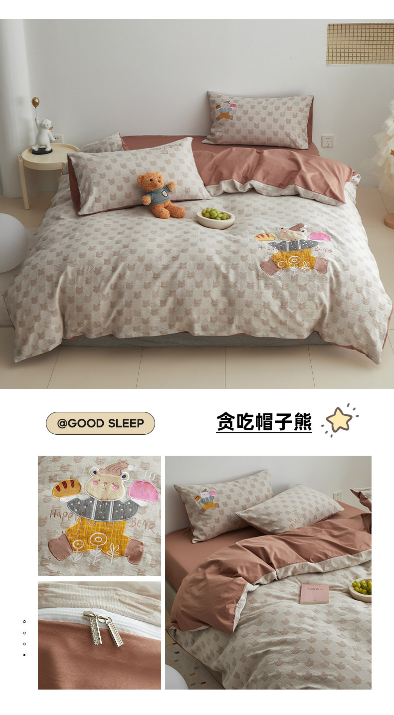 当前位置: 91家纺网 > 商品网购 > 床品套件 > 四件套 > 其它四件套 > 怡家居 2025新款色织大提花贴布绣四件套 贪吃帽子熊