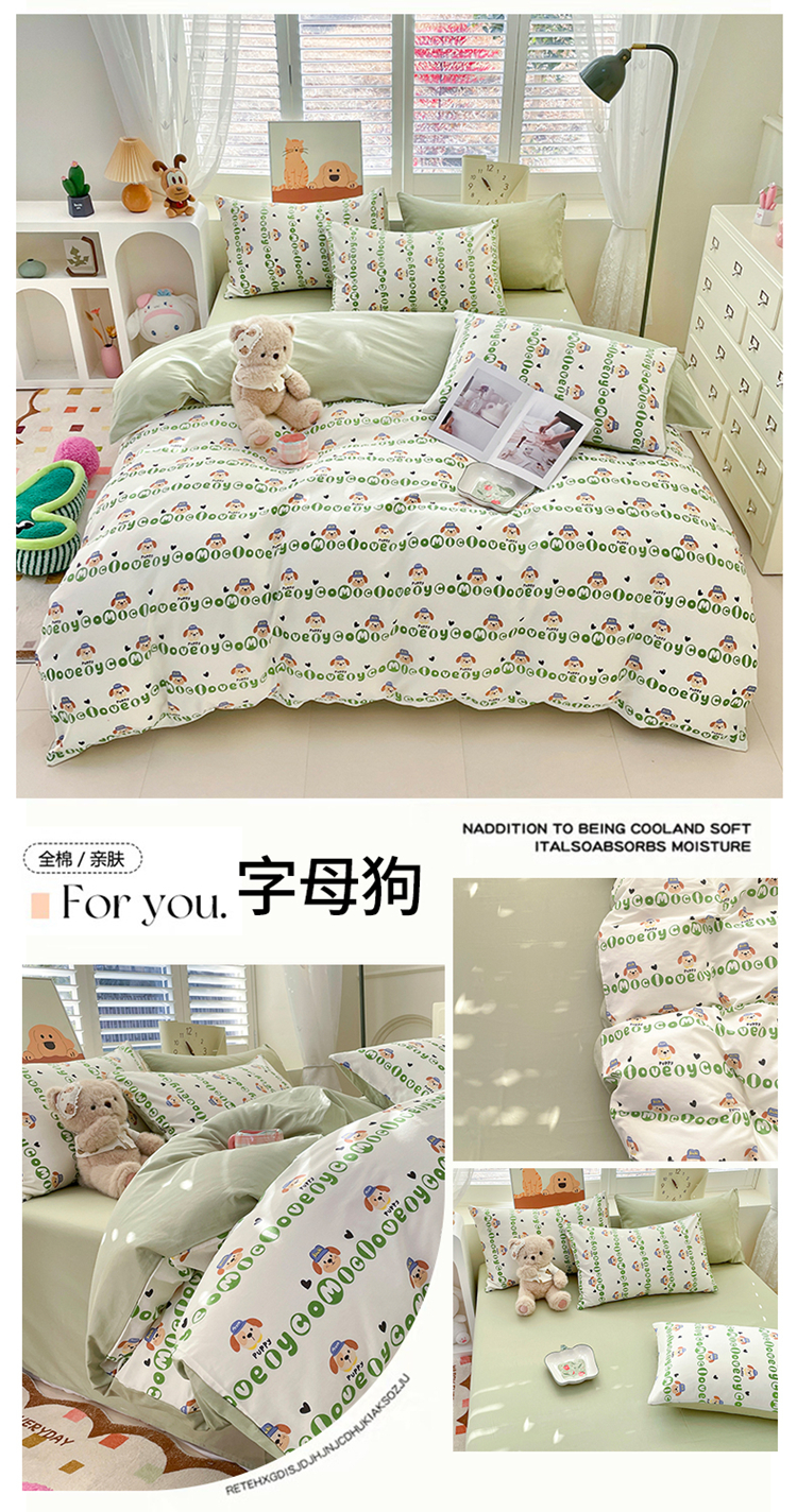 宜家坊 2025新款全棉13070单床单床笠纯棉单品枕套床笠床单(有预缩尺寸 售后无忧 免费提供买家秀) 字母狗