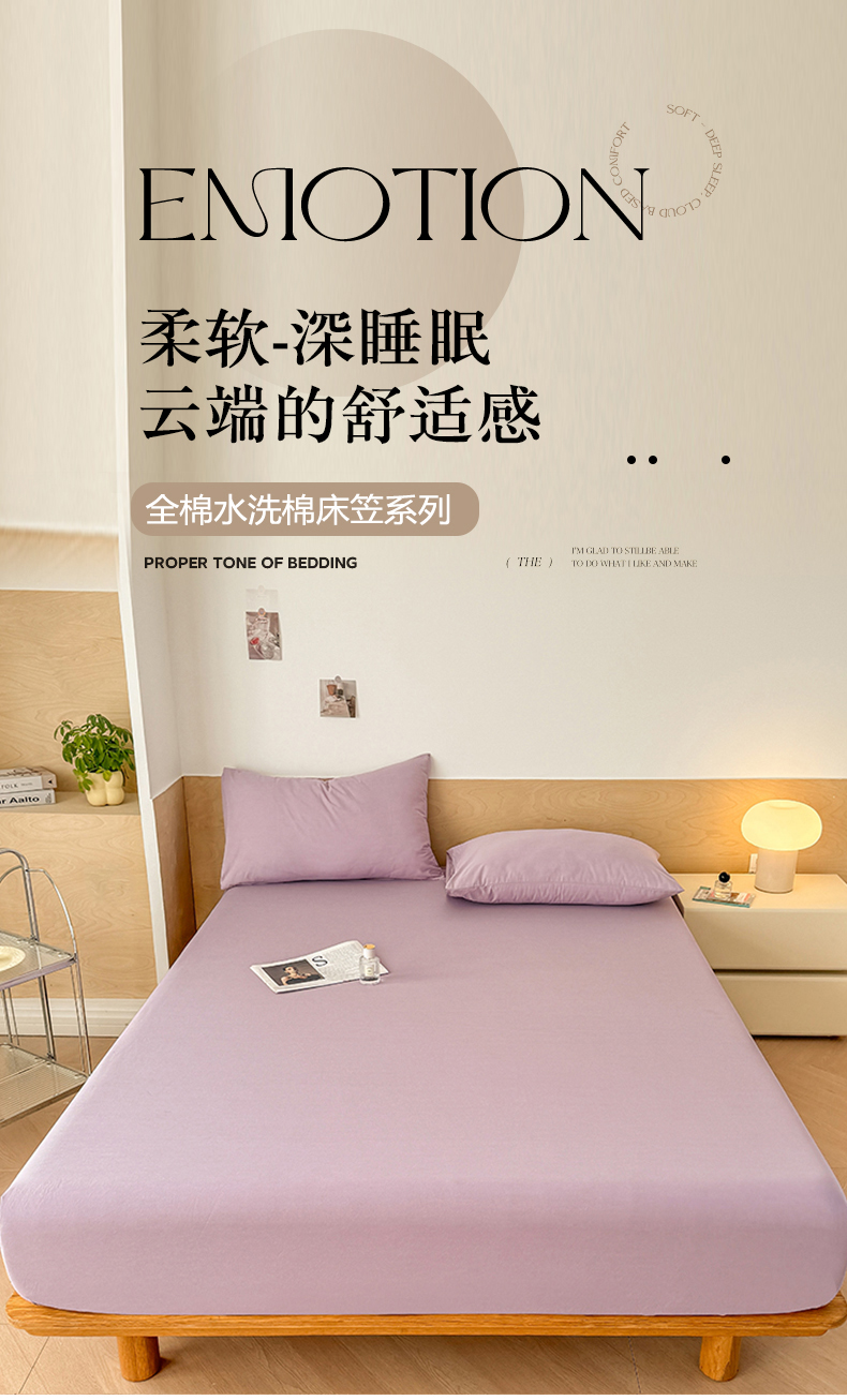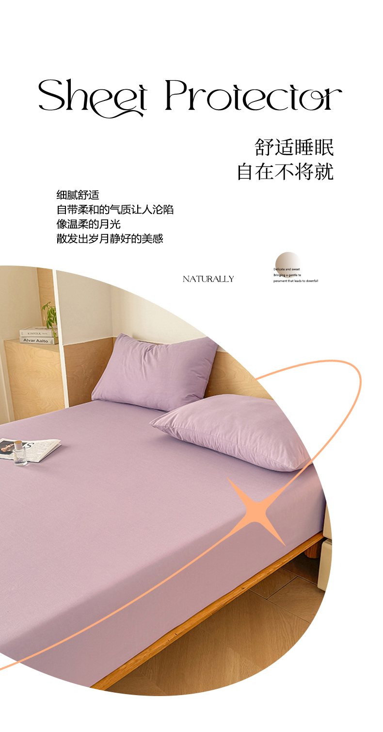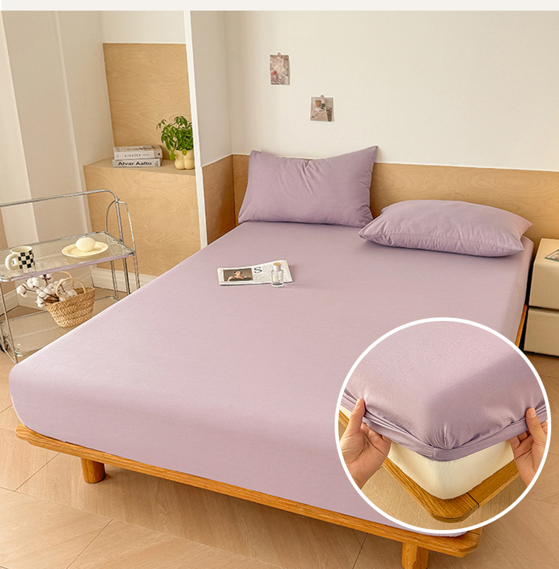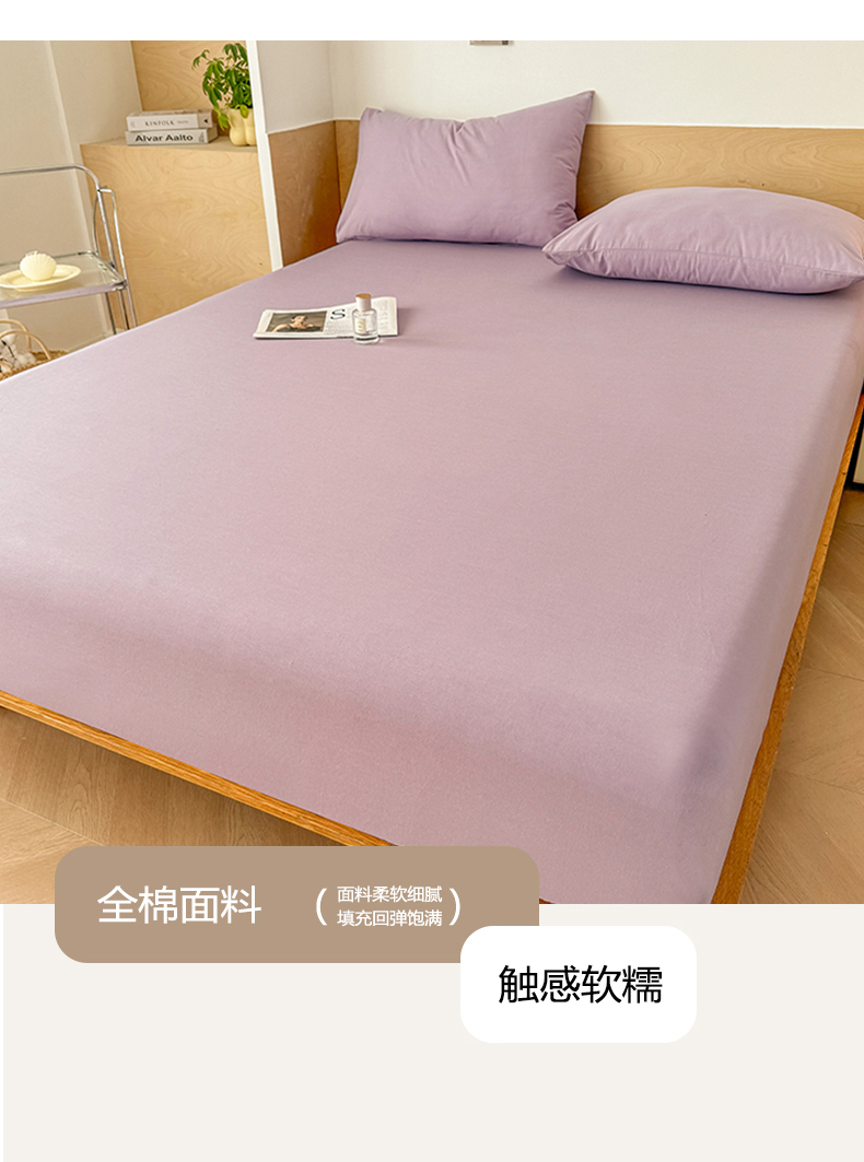 • 91家纺网 家纺一手货源 找家纺 晓时候 2025新款100%全棉色织水洗棉床笠全棉床笠纯棉床笠 香芋紫