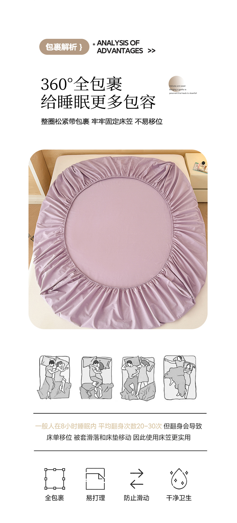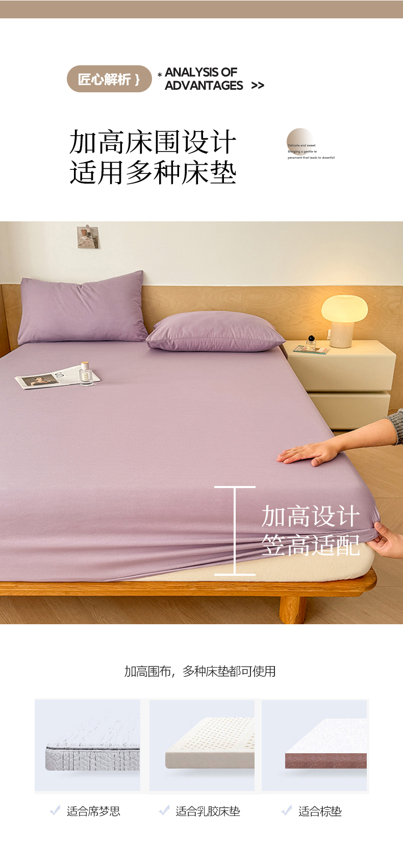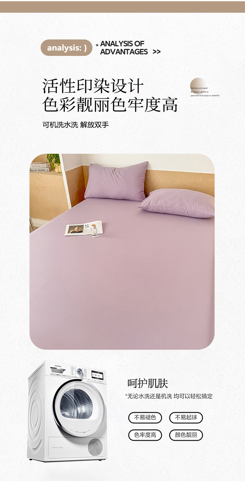 • 91家纺网 家纺一手货源 找家纺 晓时候 2025新款100%全棉色织水洗棉床笠全棉床笠纯棉床笠 香芋紫