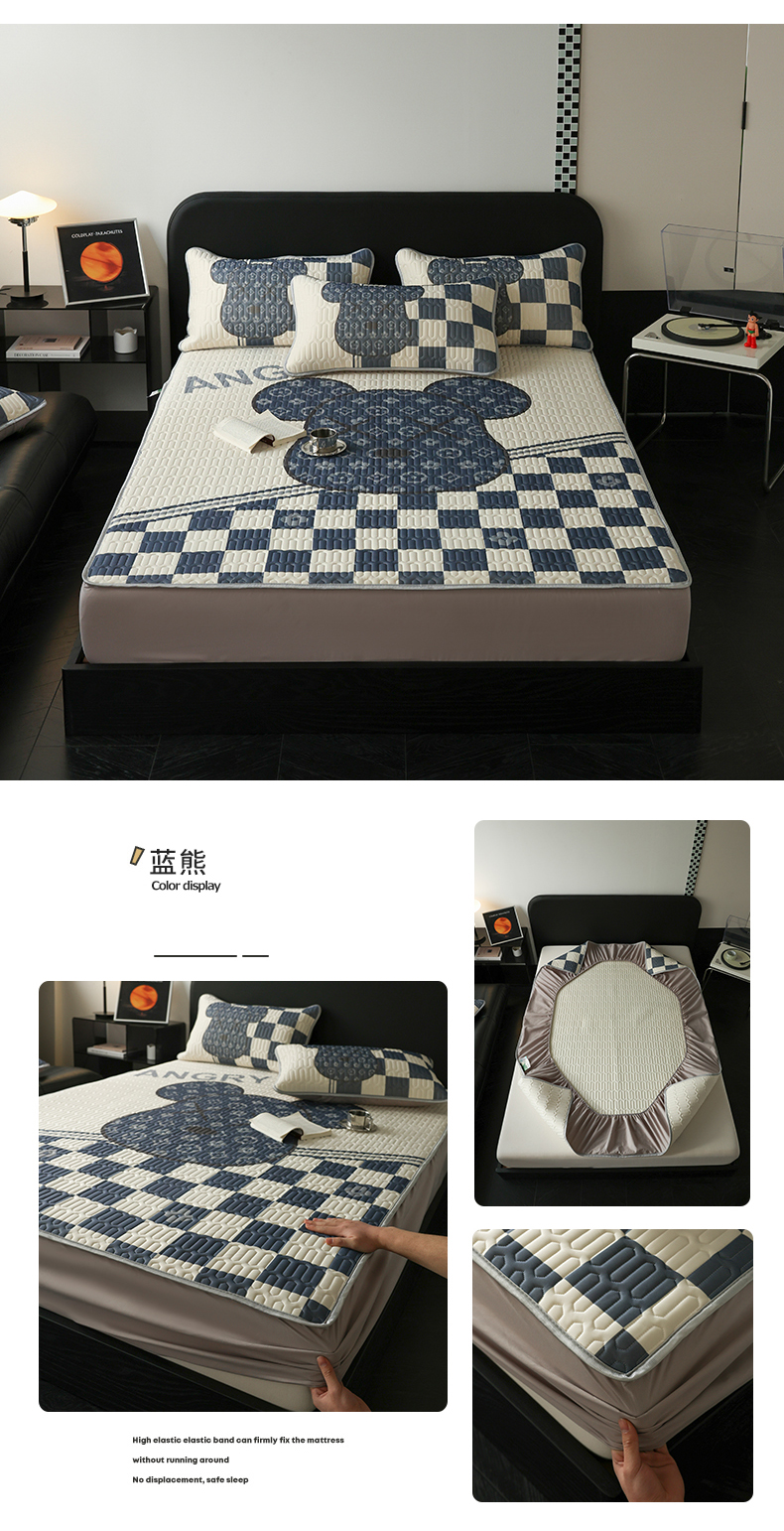 (总)圣比熊 2025新款A类云朵棉加牛奶绒双面夹棉床盖床垫保护套床垫保护罩三件套,格子小熊,蝴蝶仙子,豹纹粉,动物乐园,粉红凯蒂,萝卜小姐,南瓜橙,南瓜咖,索菲亚,唯美,屋顶花园,线条猫,小狗笨笨,樱桃