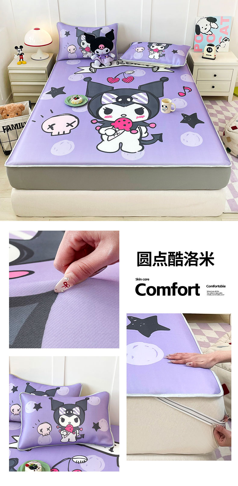 (总)米帛家纺 2024新款大版三丽鸥A类凉感丝乳胶凉席 床笠款,樱桃凯蒂猫,大脸凯蒂猫,好学库洛米,滑板帕恰狗,旅行玉桂狗,绿色库洛米,气球玉桂狗,巧克力库洛米,爆米花帕恰狗