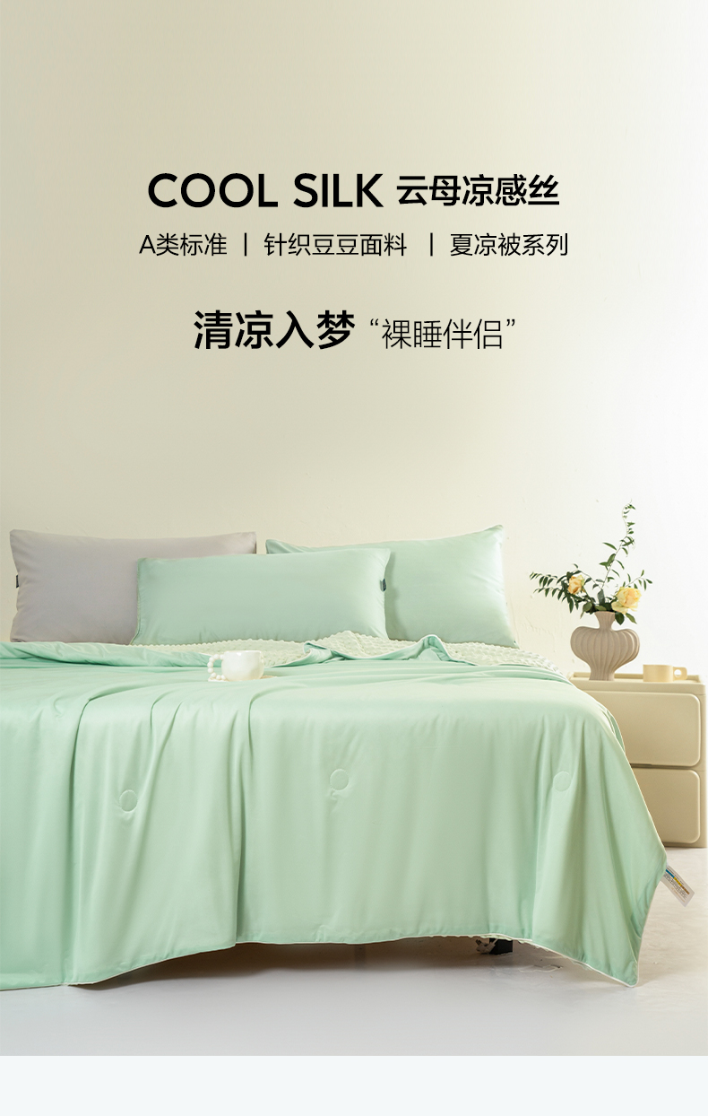 莱登卡奴 2025新款A类云母凉感丝豆豆被夏被凉席系列-单夏被 凉感丝豆豆被-水绿