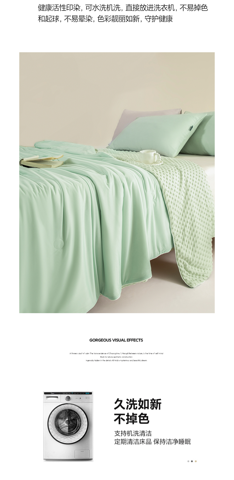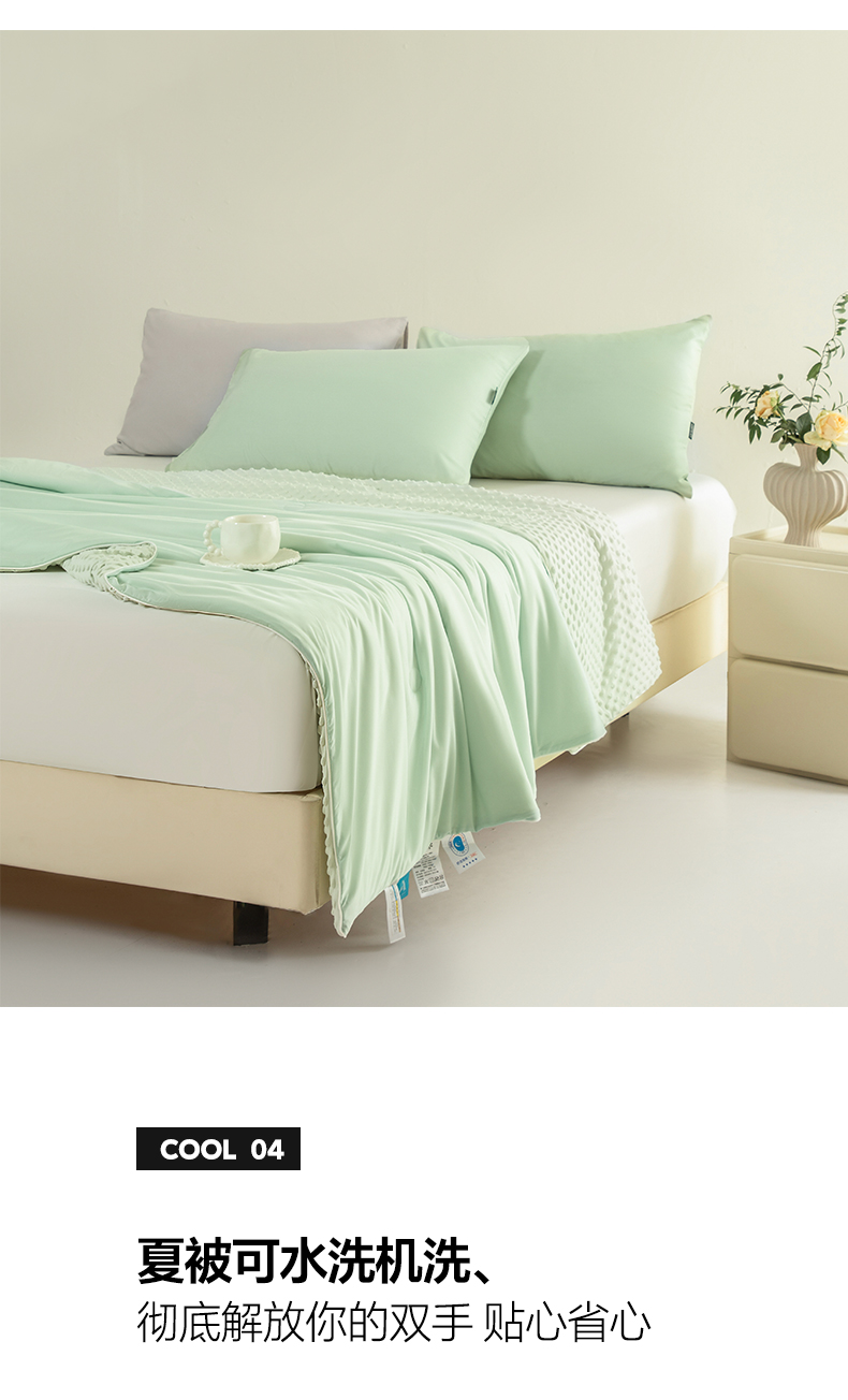 商品名称:莱登卡奴 2025新款A类云母凉感丝豆豆被夏被凉席系列-单夏被 凉感丝豆豆被-水绿