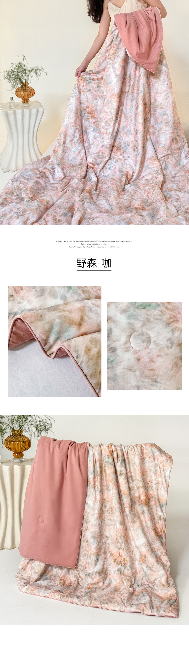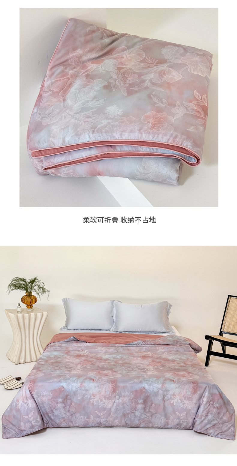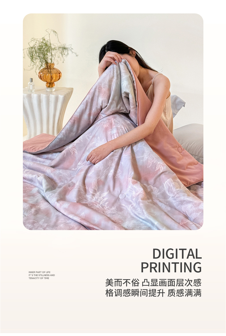 2025新款仿色织提花数码印花轻奢风水洗棉夏被 隐纱-粉