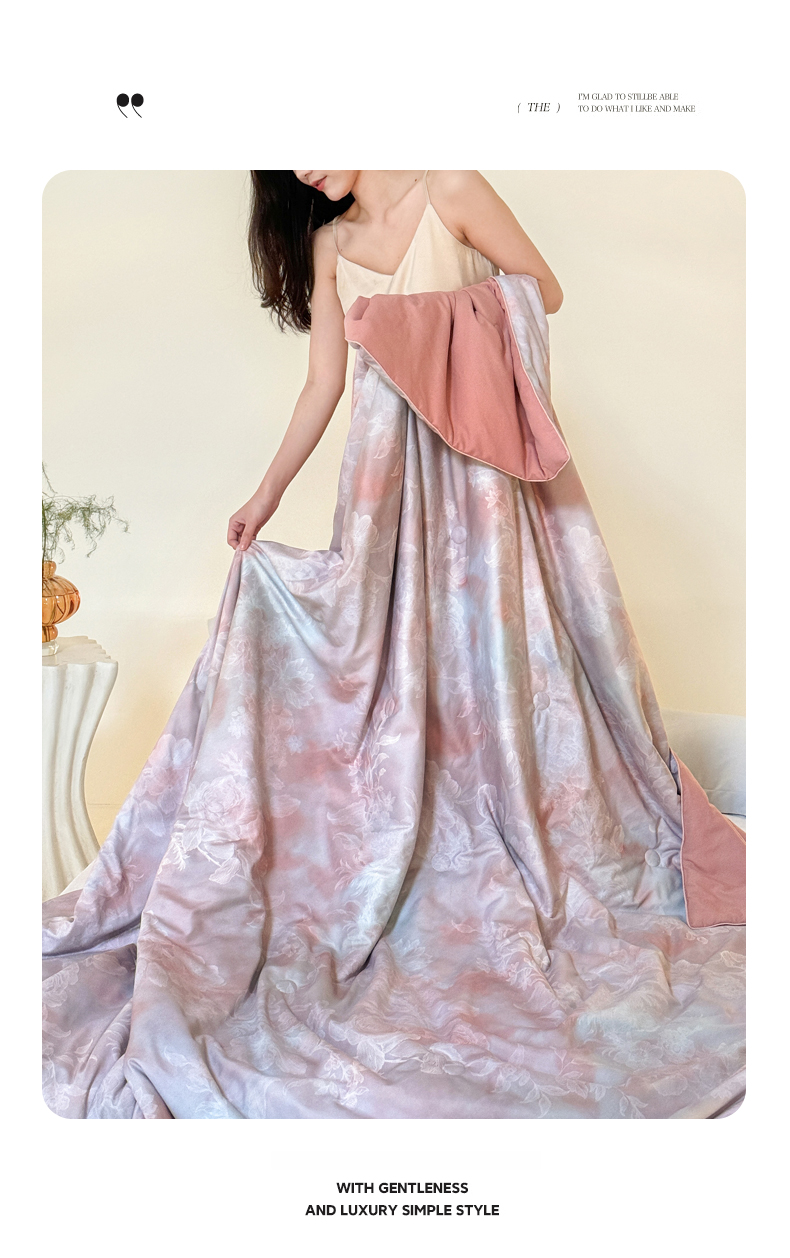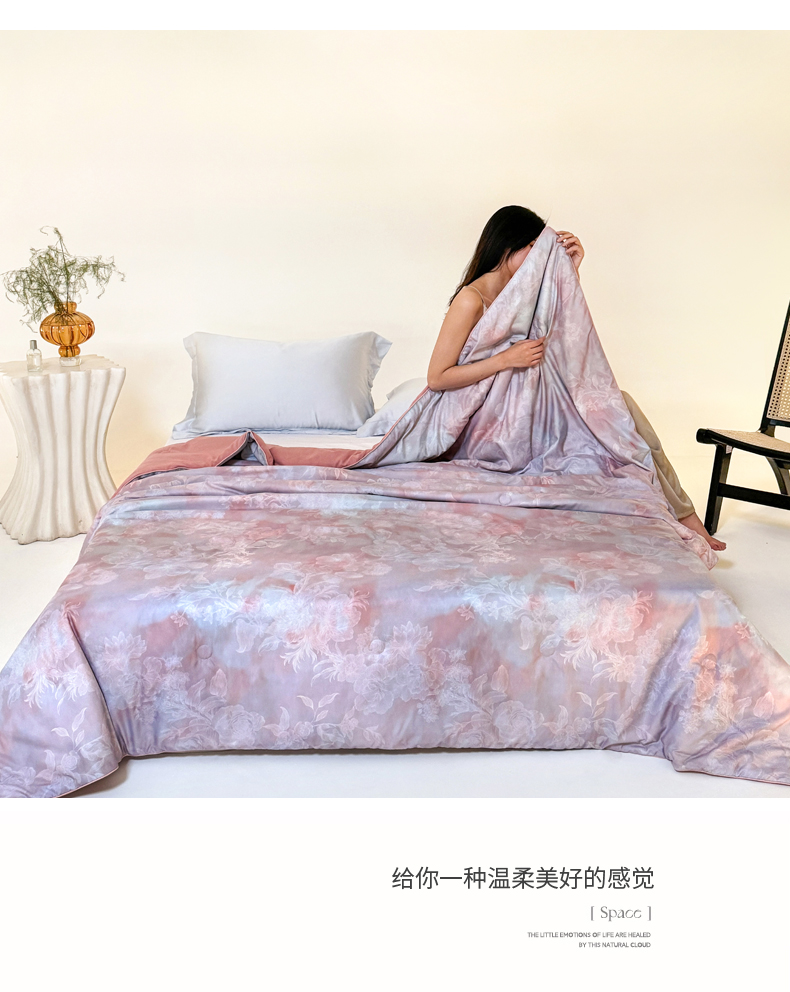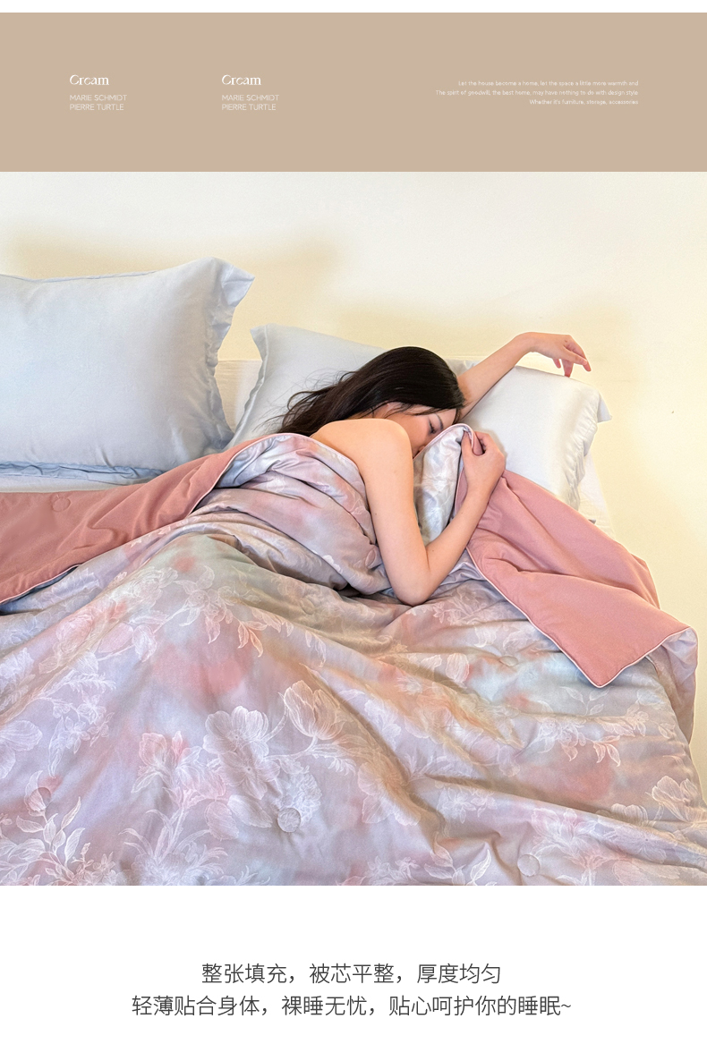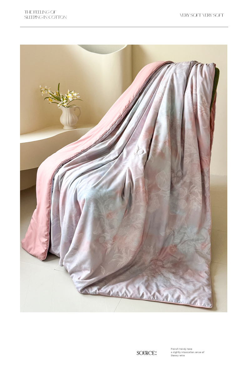 2025新款仿色织提花数码印花轻奢风水洗棉夏被 隐纱-粉