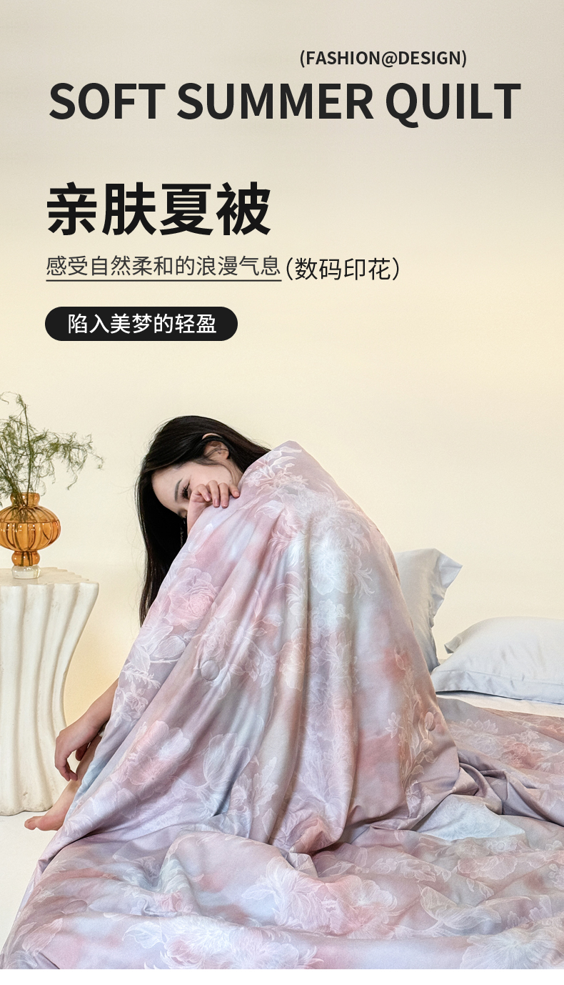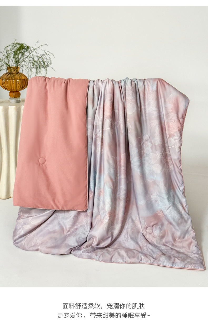 商品名称:2025新款仿色织提花数码印花轻奢风水洗棉夏被 隐纱-粉