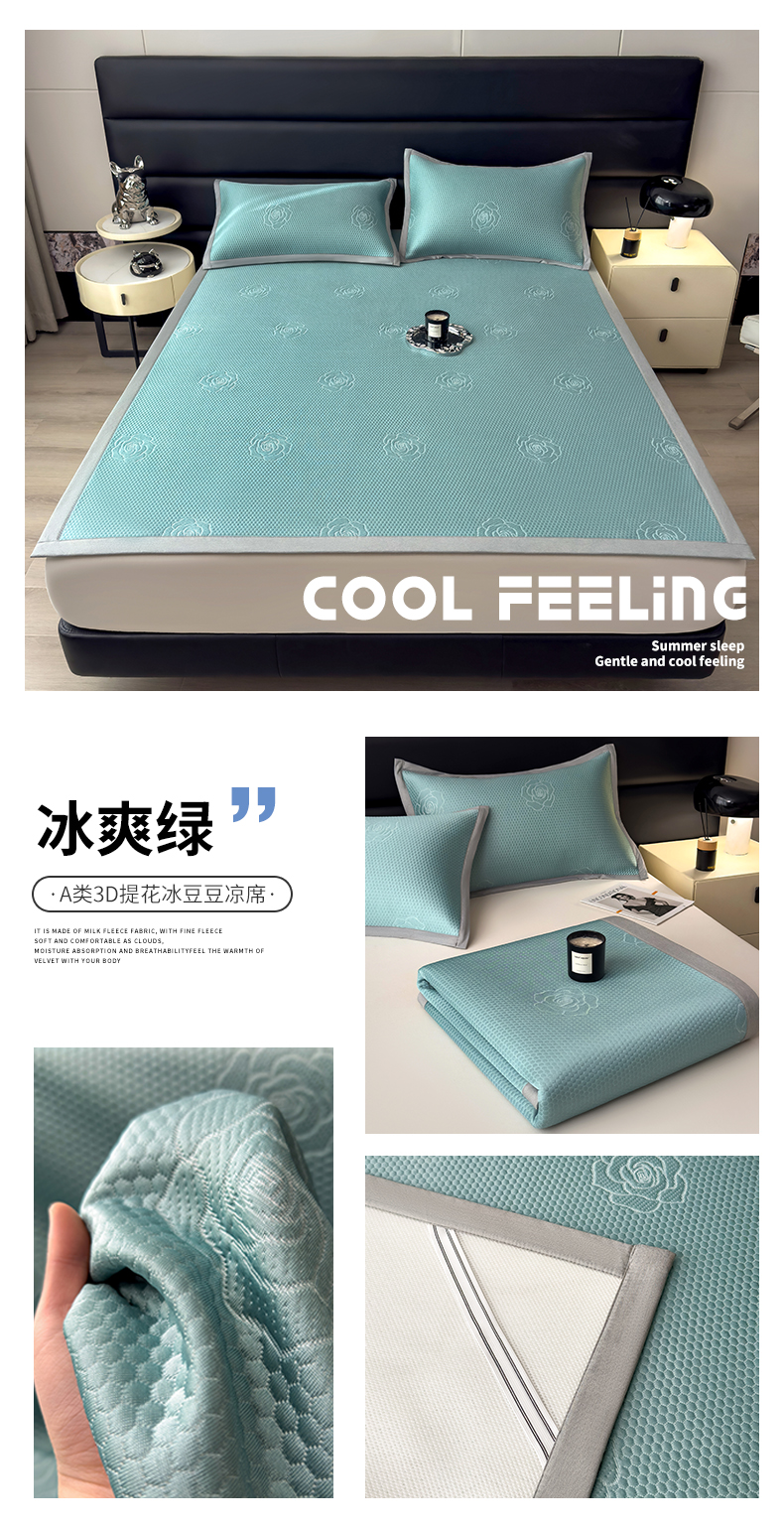 当前位置: 91家纺网 > 商品网购 > 床上用品 > 凉席 > 冰丝席 > 欧邦 2025新款A类3D立体提花冰豆豆凉席 冰豆豆-冰爽绿