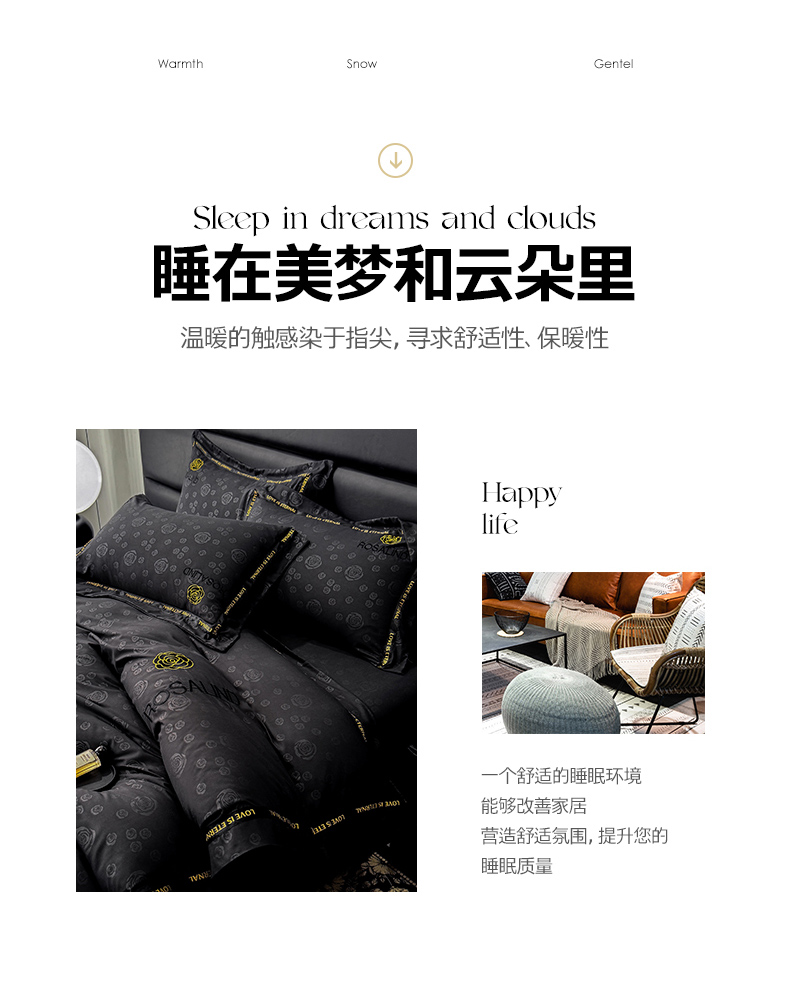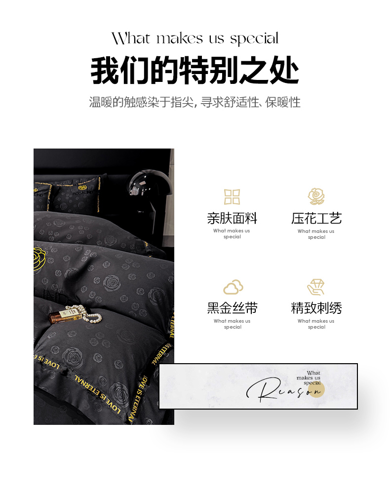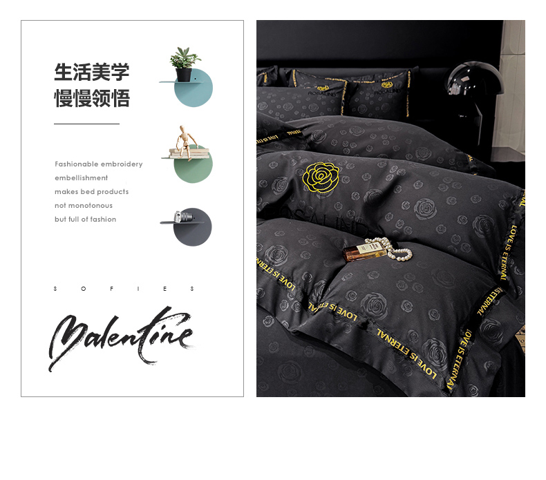 商品名称:2025新款亲肤磨毛刺绣压花四件套--格调系列【提供买家秀】 格调-耀黑