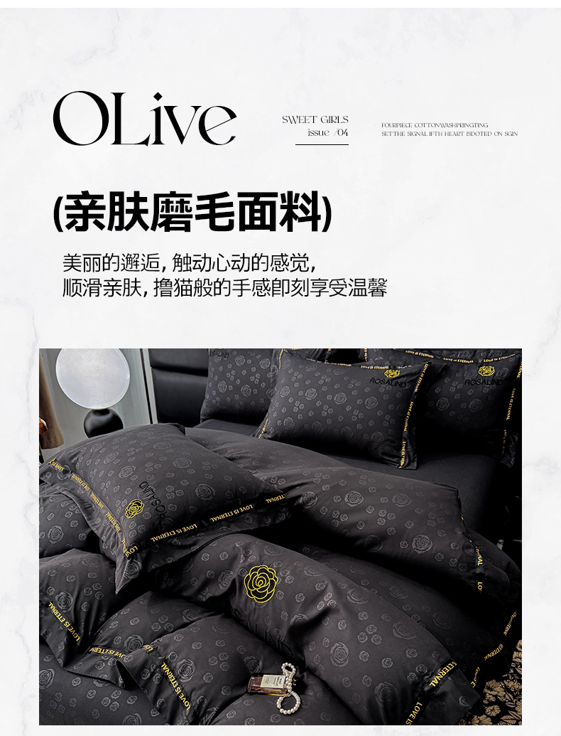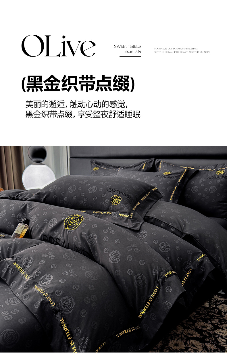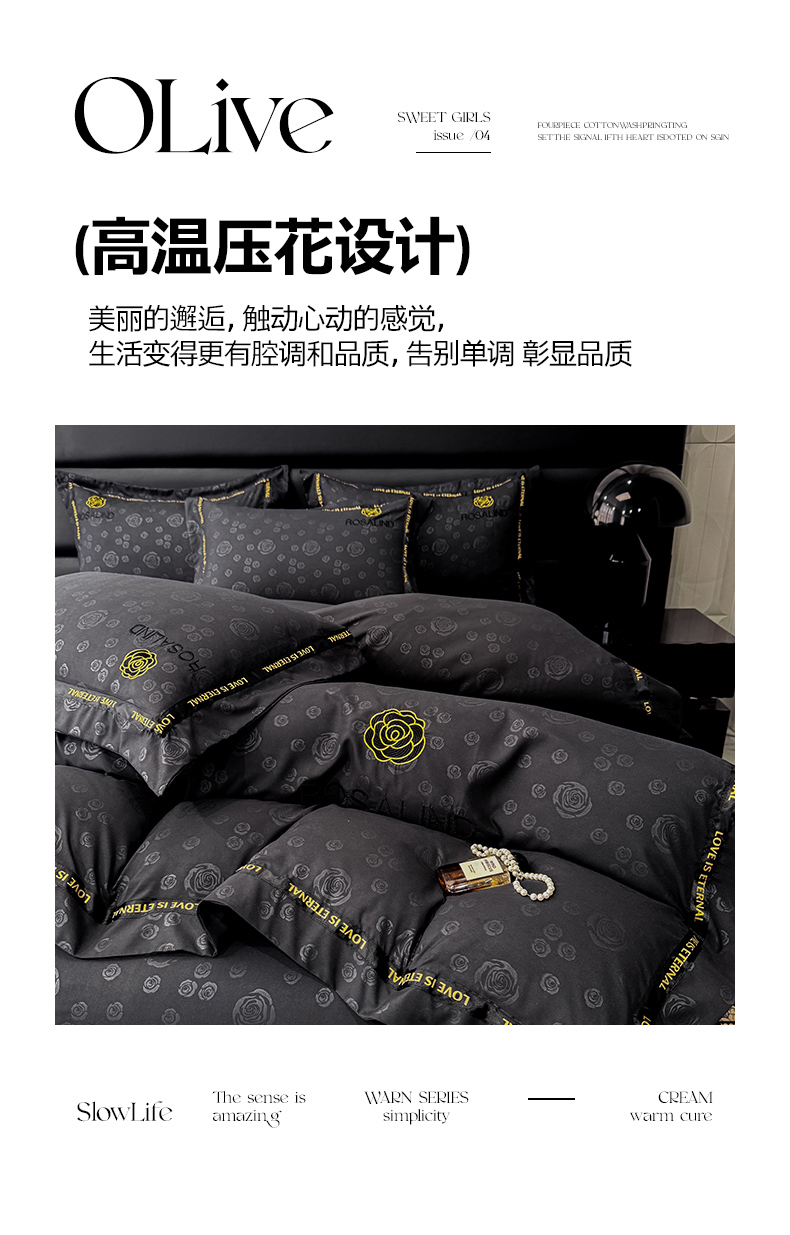 2025新款亲肤磨毛刺绣压花四件套--格调系列【提供买家秀】 格调-耀黑