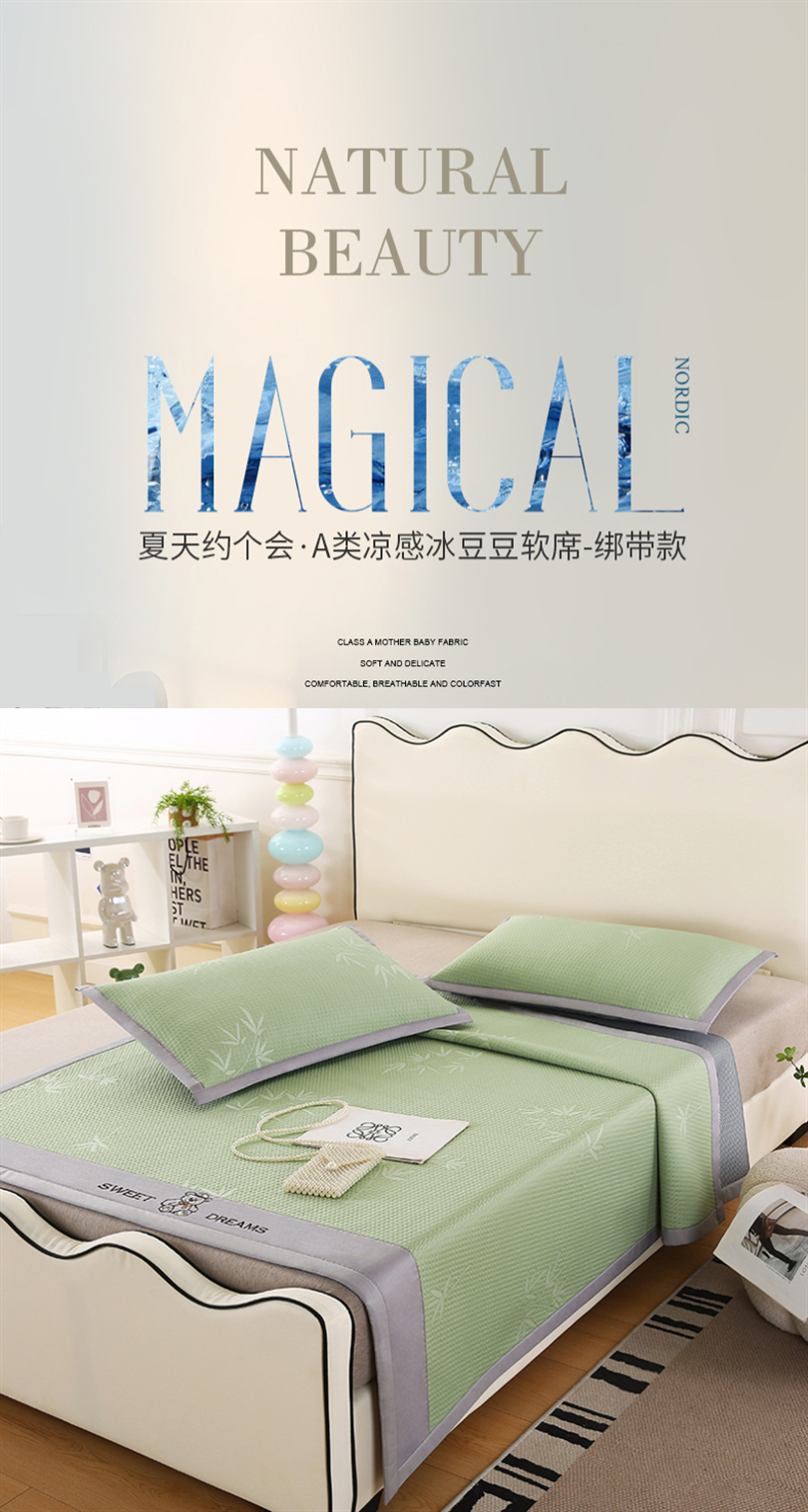 商品名称:席万佳 2025新款A类高克重凉感冰豆豆凉席软席子凉席三件套-绑带款 竹粉