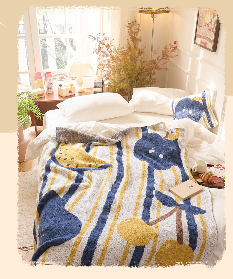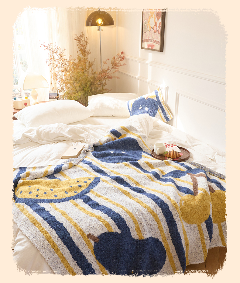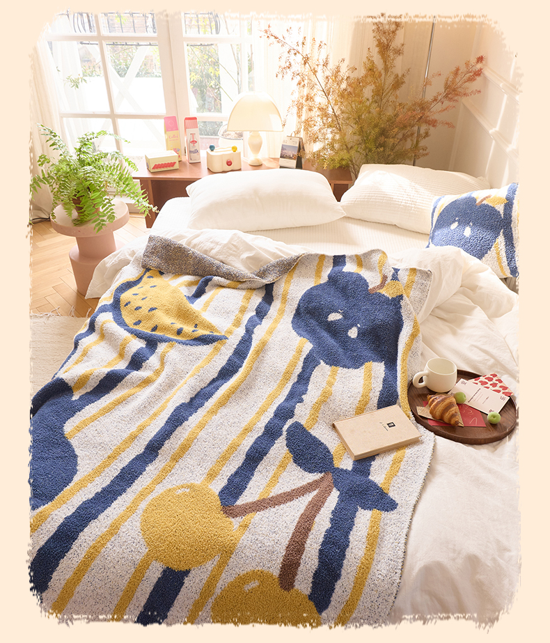 (总)暖绵绵家纺 2025新款A类半边绒清新水果盖毯-夏维希,夏维希-蓝色,夏维希-紫色