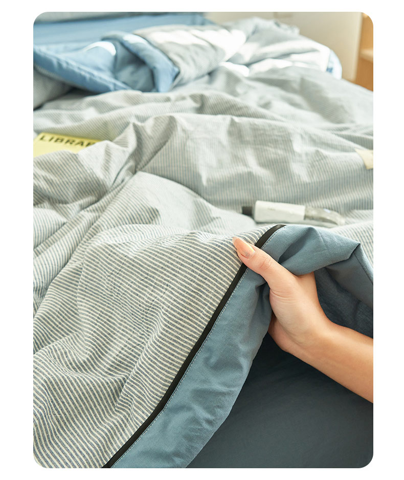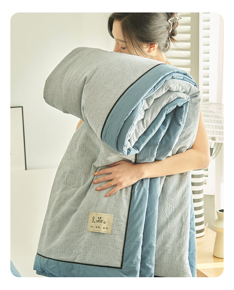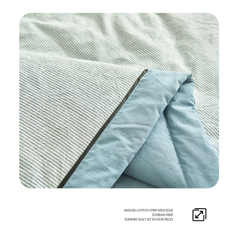商品名称:(总)寐绸家纺 2025新款纯棉水洗棉细条宽边大豆纤维夏被四件套