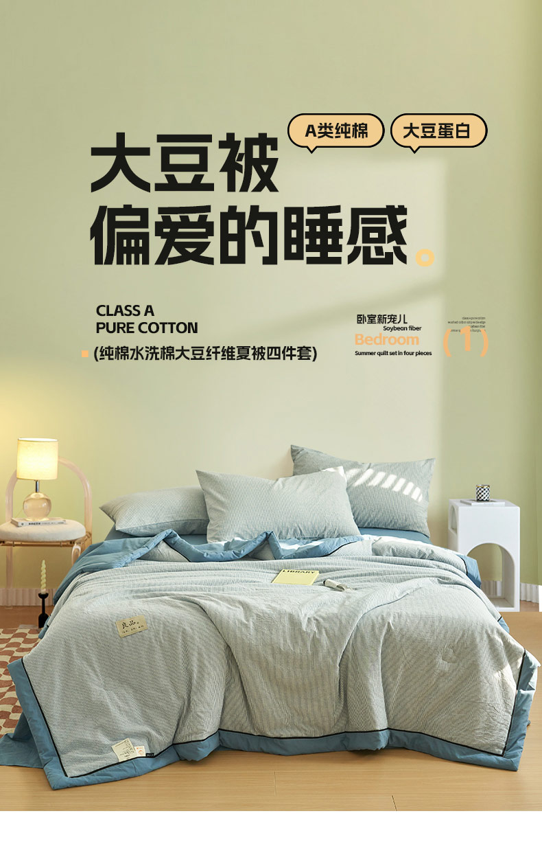 (总)寐绸家纺 2025新款纯棉水洗棉简约双拼大豆纤维夏被四件套,宾利蓝+浅灰,豆沙粉+浅灰,米白+青绿,牛仔蓝+浅灰,浅灰+杏色,天蓝+米黄